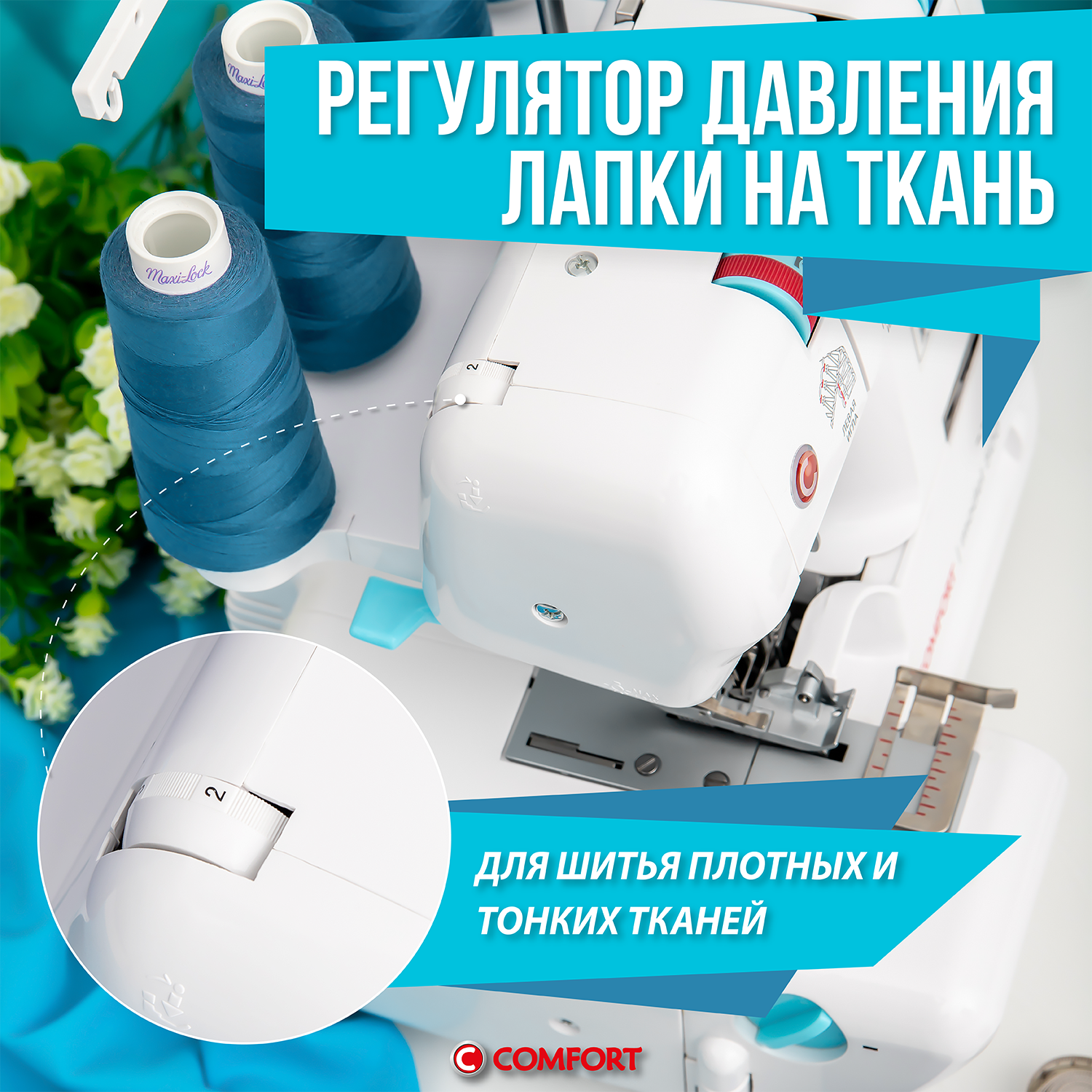 Оверлок Comfort 500, 2,3,4х ниточный, дифференциальная подача, откидная платформа интересное:
