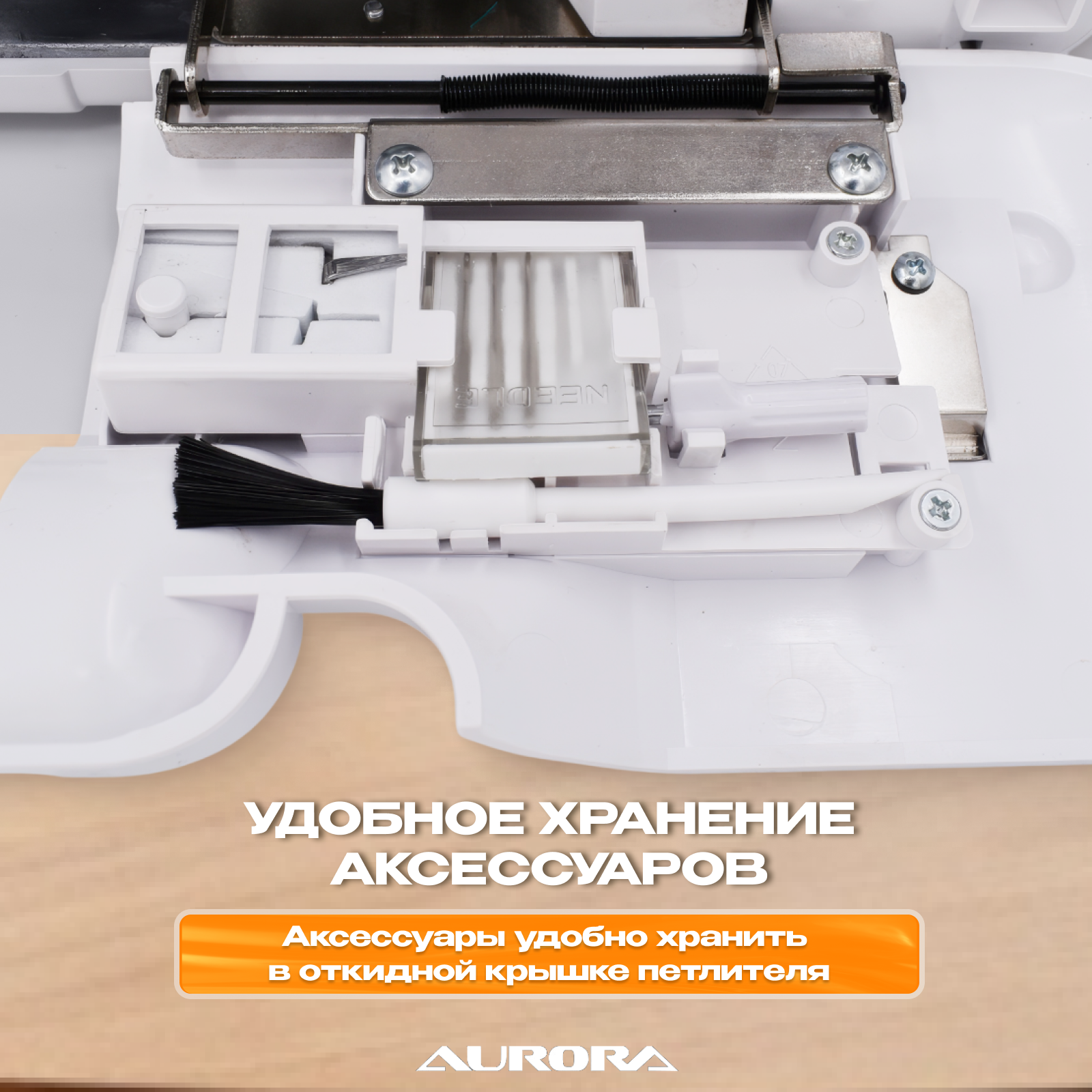 Оверлок Aurora 636D, съёмная рукавная платформа, 2/3/4 нитки, три лапки в подарок.