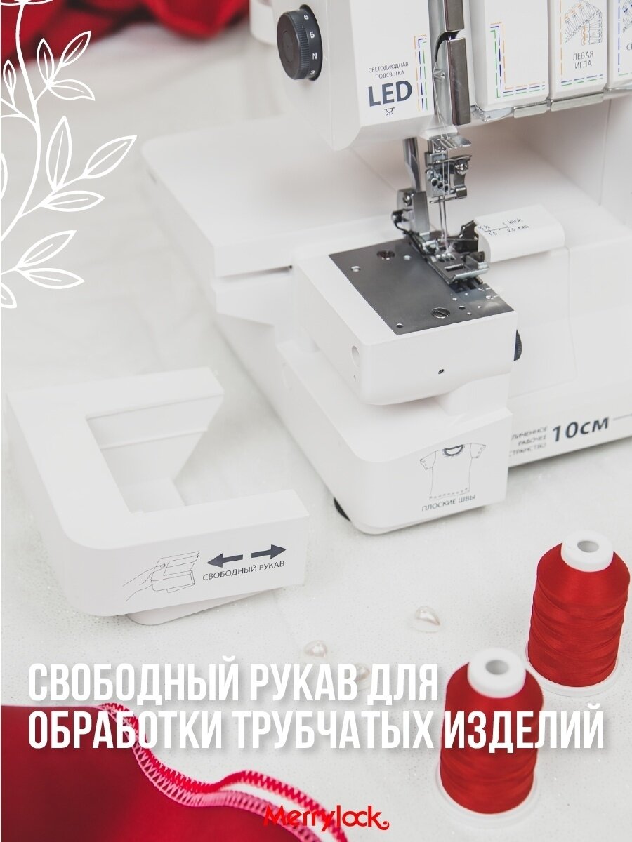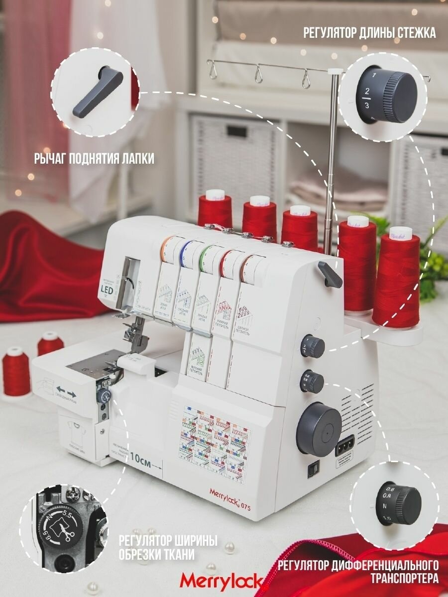 Коверлок Merrylock 075, 20 видов швов, съемная рукавная платформа, дифференциал. интересное: