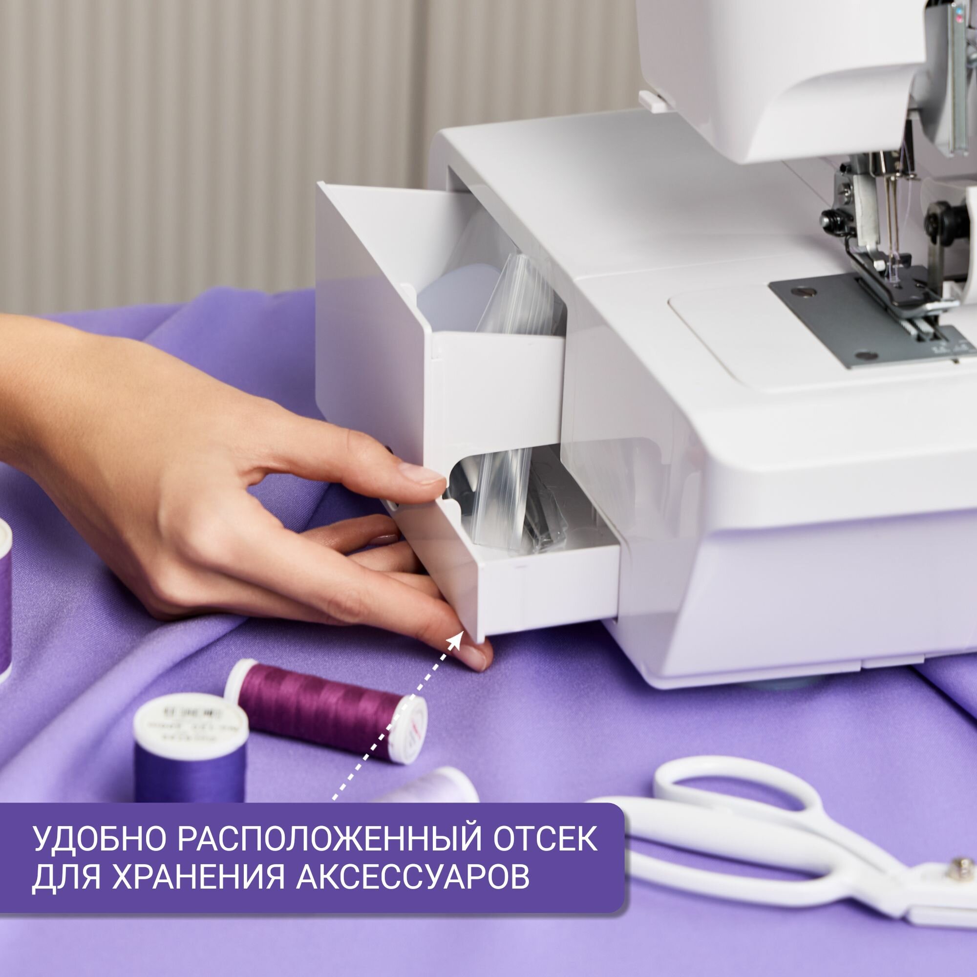| Комплектация | Оверлок - 1 шт.; Педаль с шнуром питания - 1 шт.; Мусоросборник - 1 шт.; Катушкодержатели - 4 шт.; Игла - 3 шт; Адаптеры для бобин - 4 шт.; Бобинодержатели - 4 шт.; Нижний нож - 1 шт.; Направляющая планка - 1 шт.; Щеточка - 1 шт.; Пинцет - 1 шт.; Отвертка(S) - 1 шт.; Отвертка (М) - 1 шт.; Отвертка (L) - 1 шт.; Конвертер - 1 шт.; Пылезащитный чехол оверлока - 1 шт |