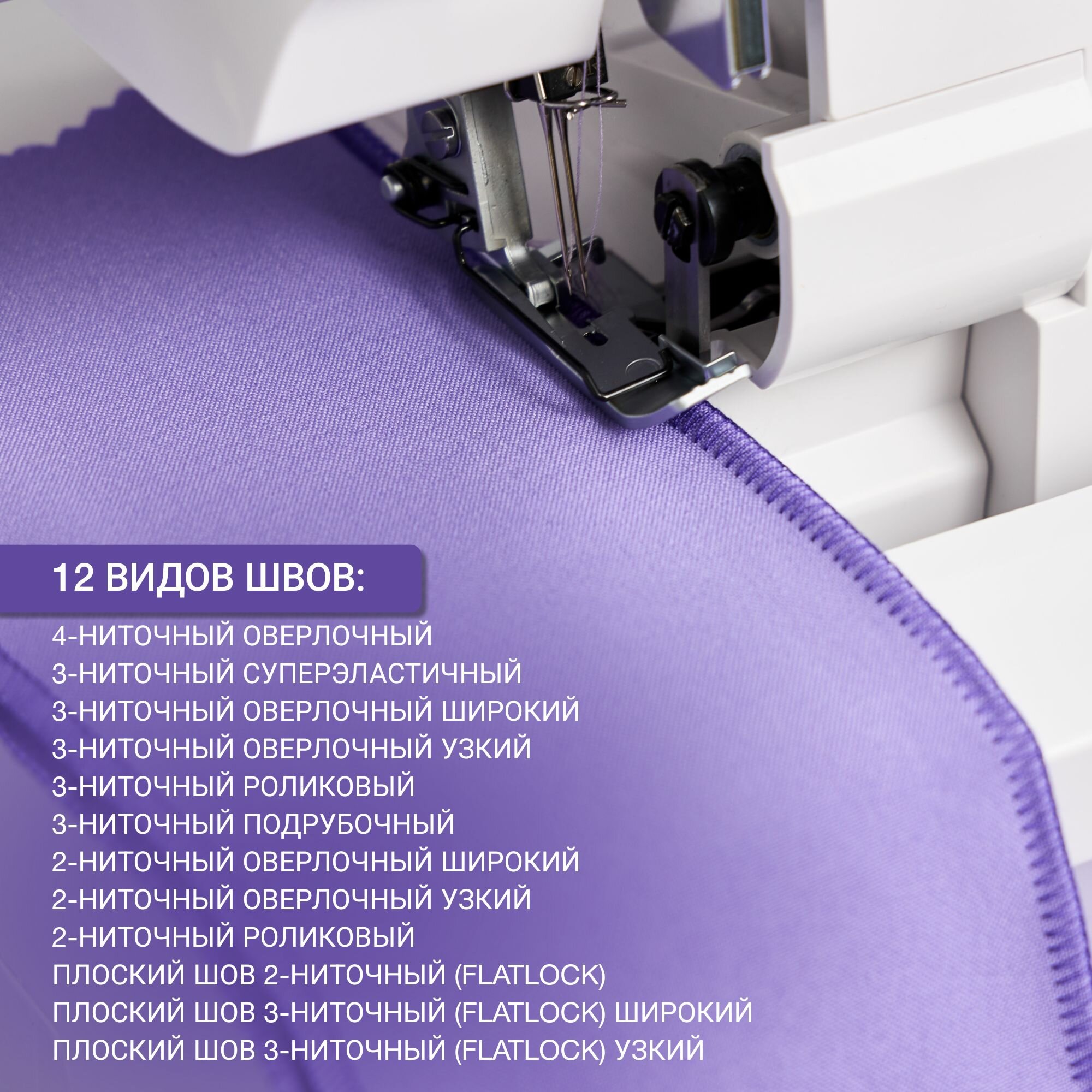 | Вид оверлока | 2х ниточный, 3х ниточный, 4х ниточный |