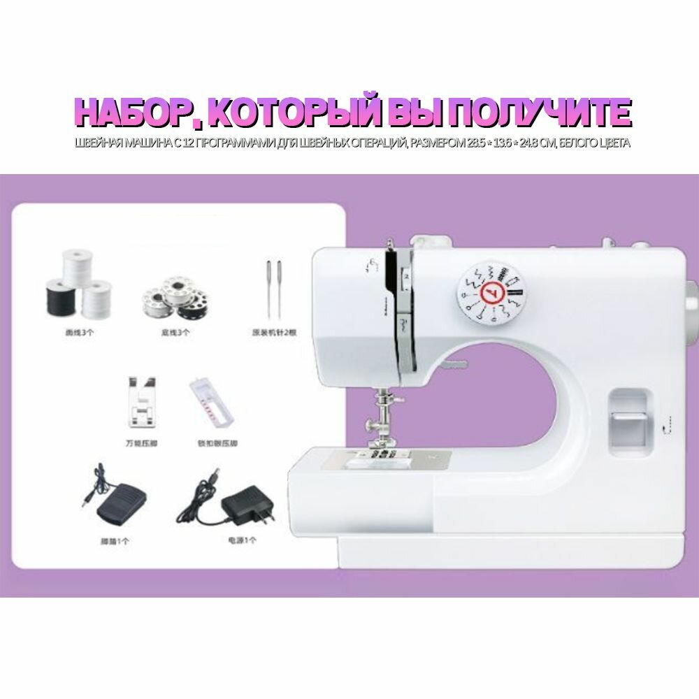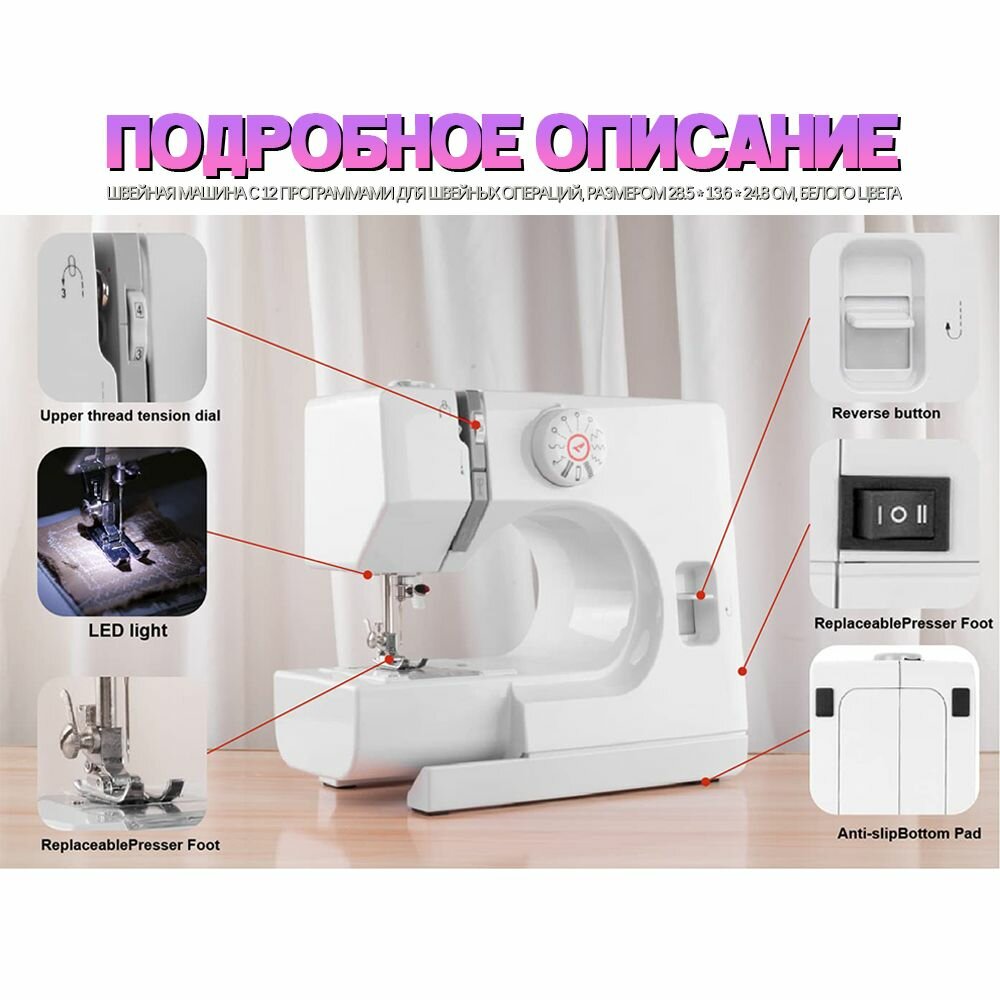 Швейная машинка электрическая. Питание от сети и батареек, реверс, регулировка скорости, нитевдеватель и подсветка,12 видов строчек -J интересное:
