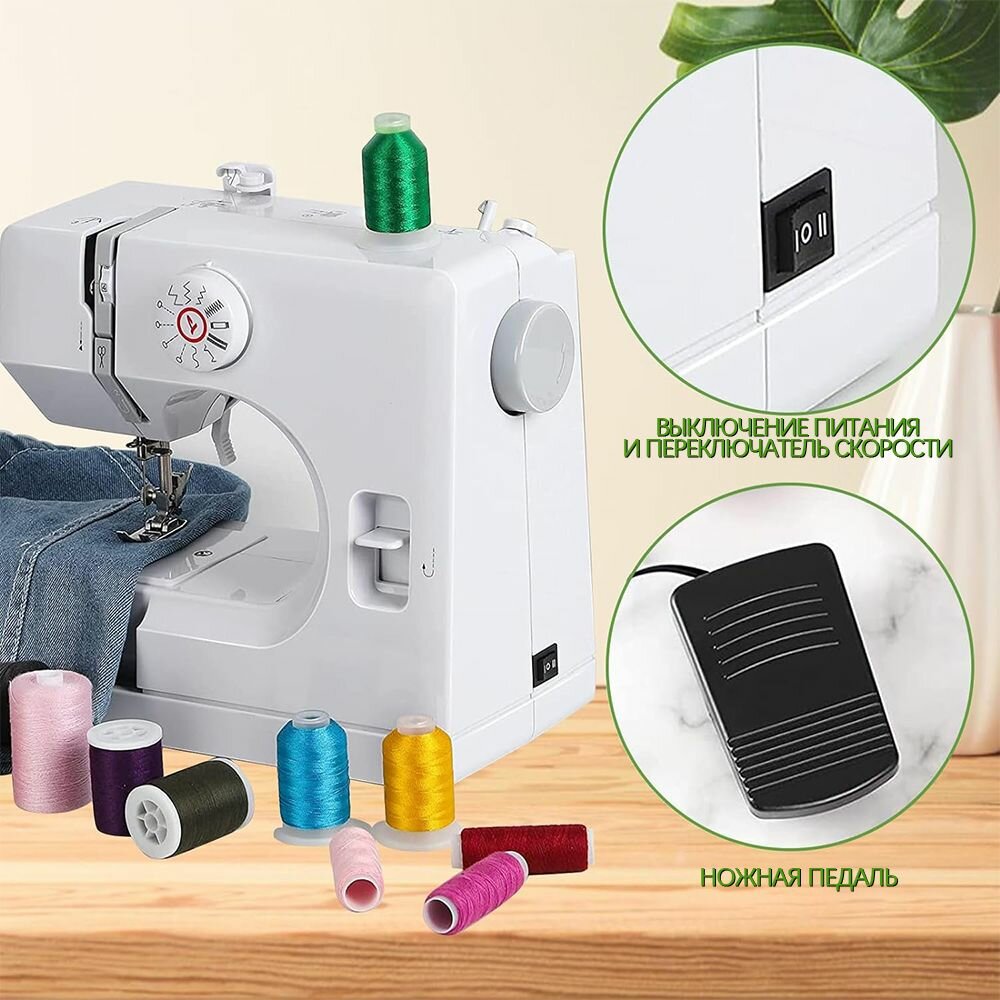 Купить Швейная машинка электрическая. Питание от сети и батареек, реверс, регулировка скорости, нитевдеватель и подсветка,12 видов строчек -J