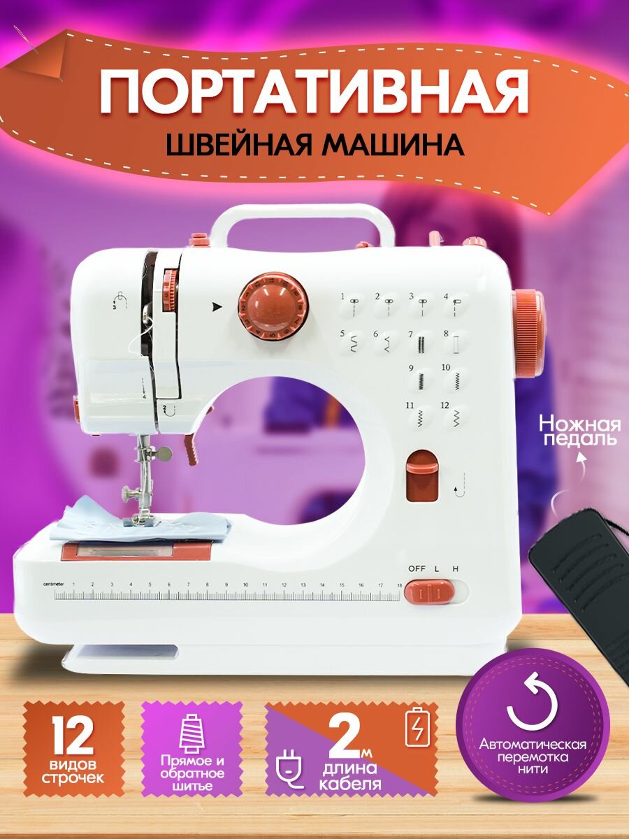 Швейная машинка мини электрическая KTC-9925 с педалью, 12 типов стежков, 2 скорости + педаль