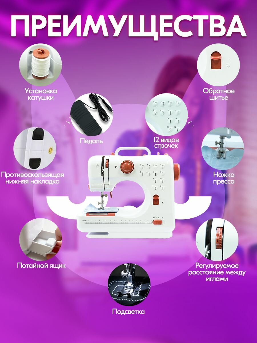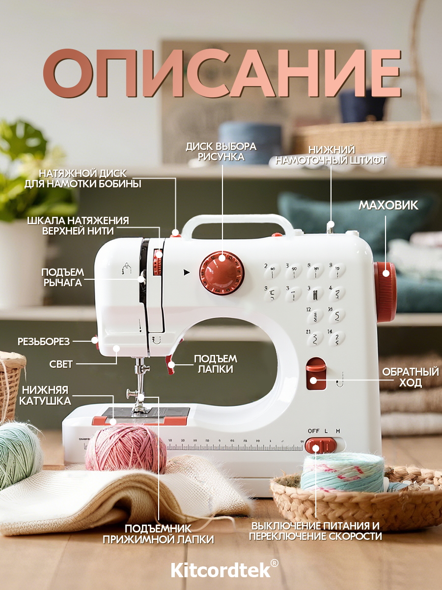 Швейная машинка электрическая KTC-9907,12 видов строчки, подсветка LED интересное: