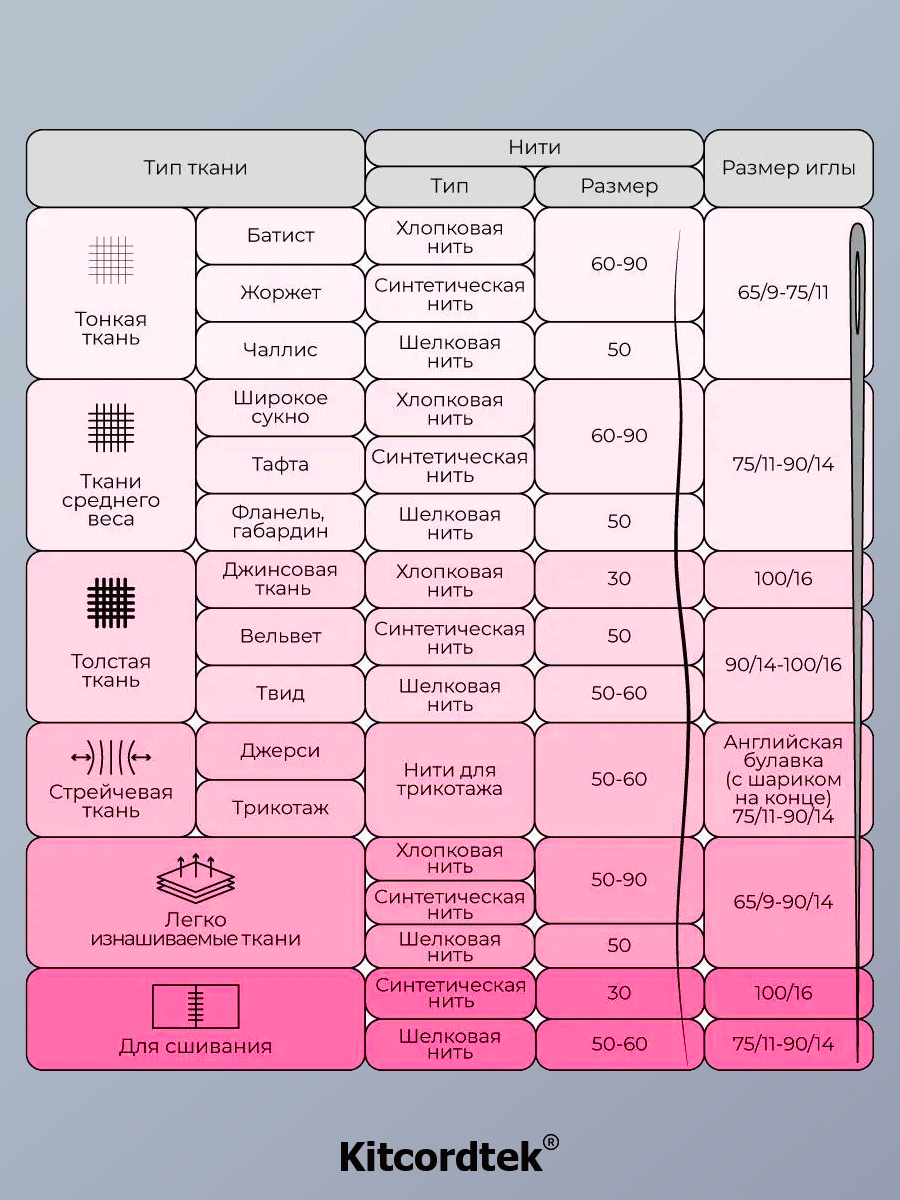| Прошиваемые ткани | Средние |