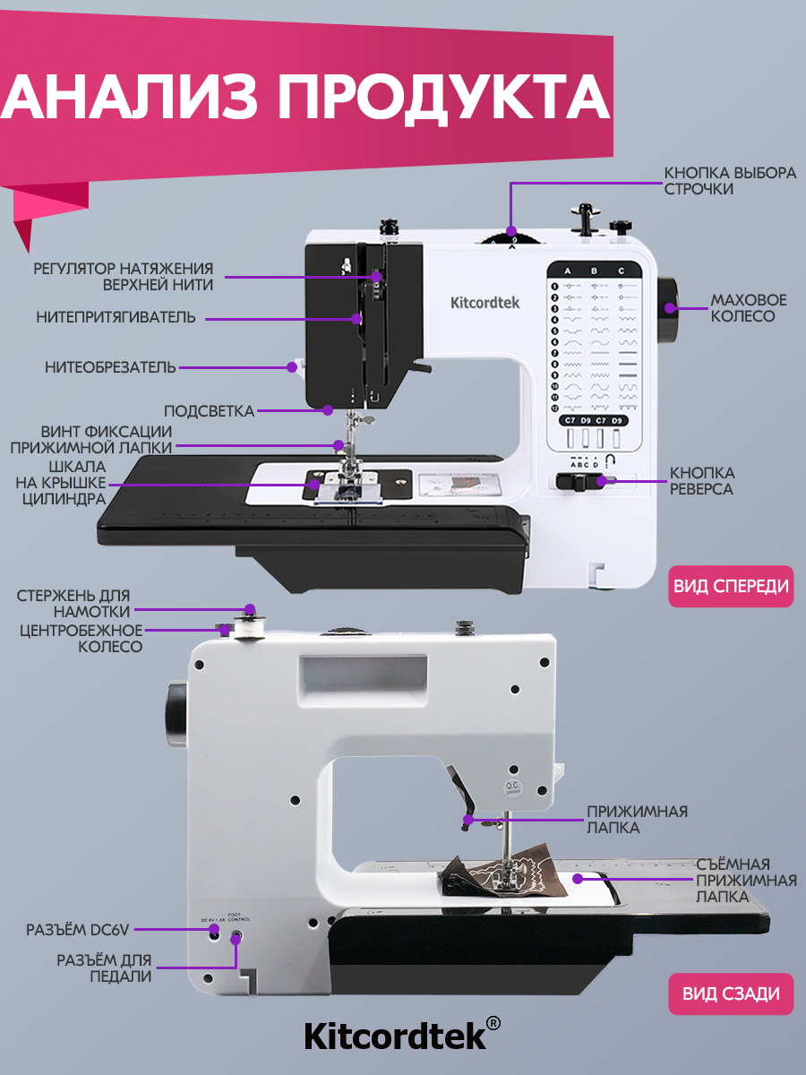 Швейная машинка электрическая KTC-9903, с педалью и столиком,38 видов строчки интересное: