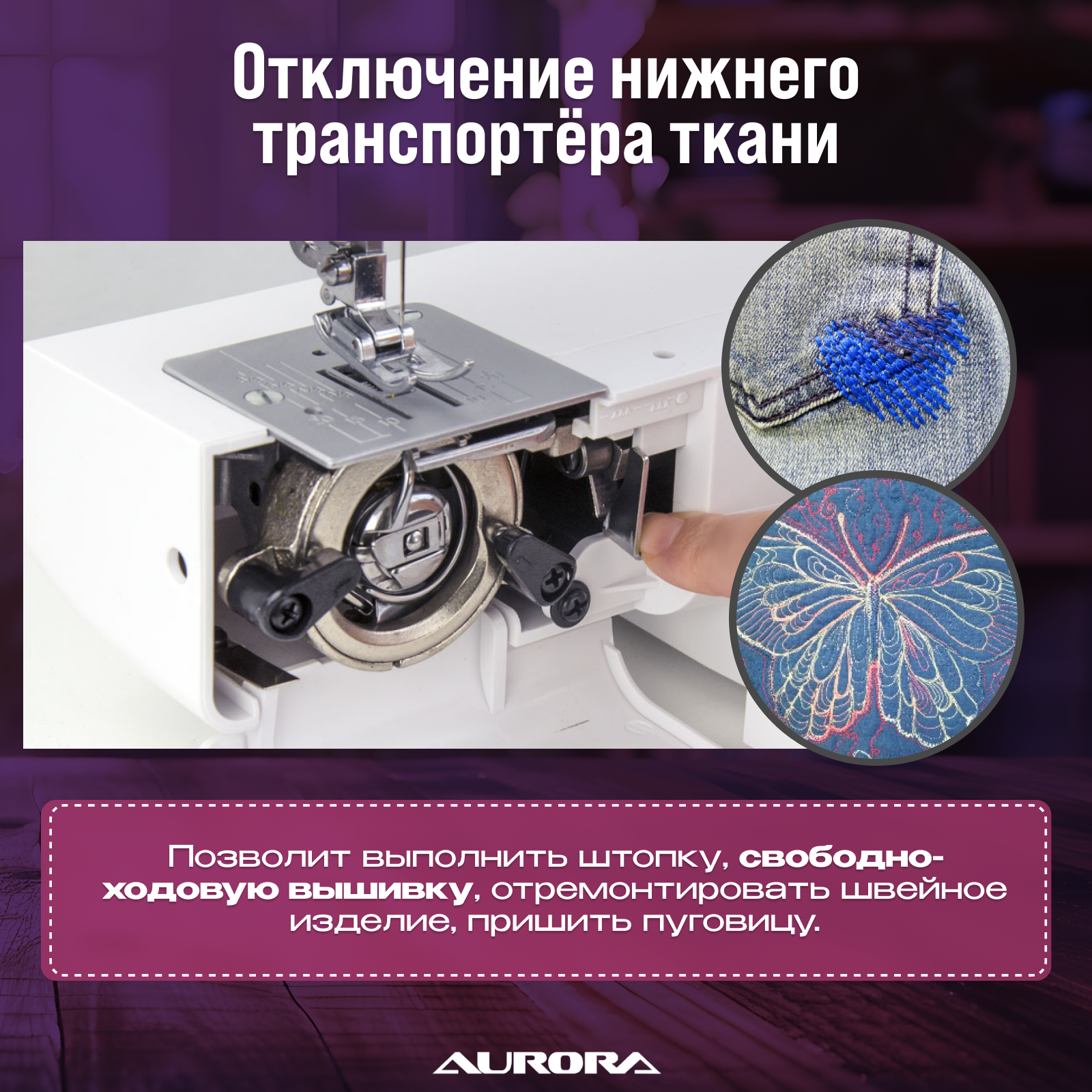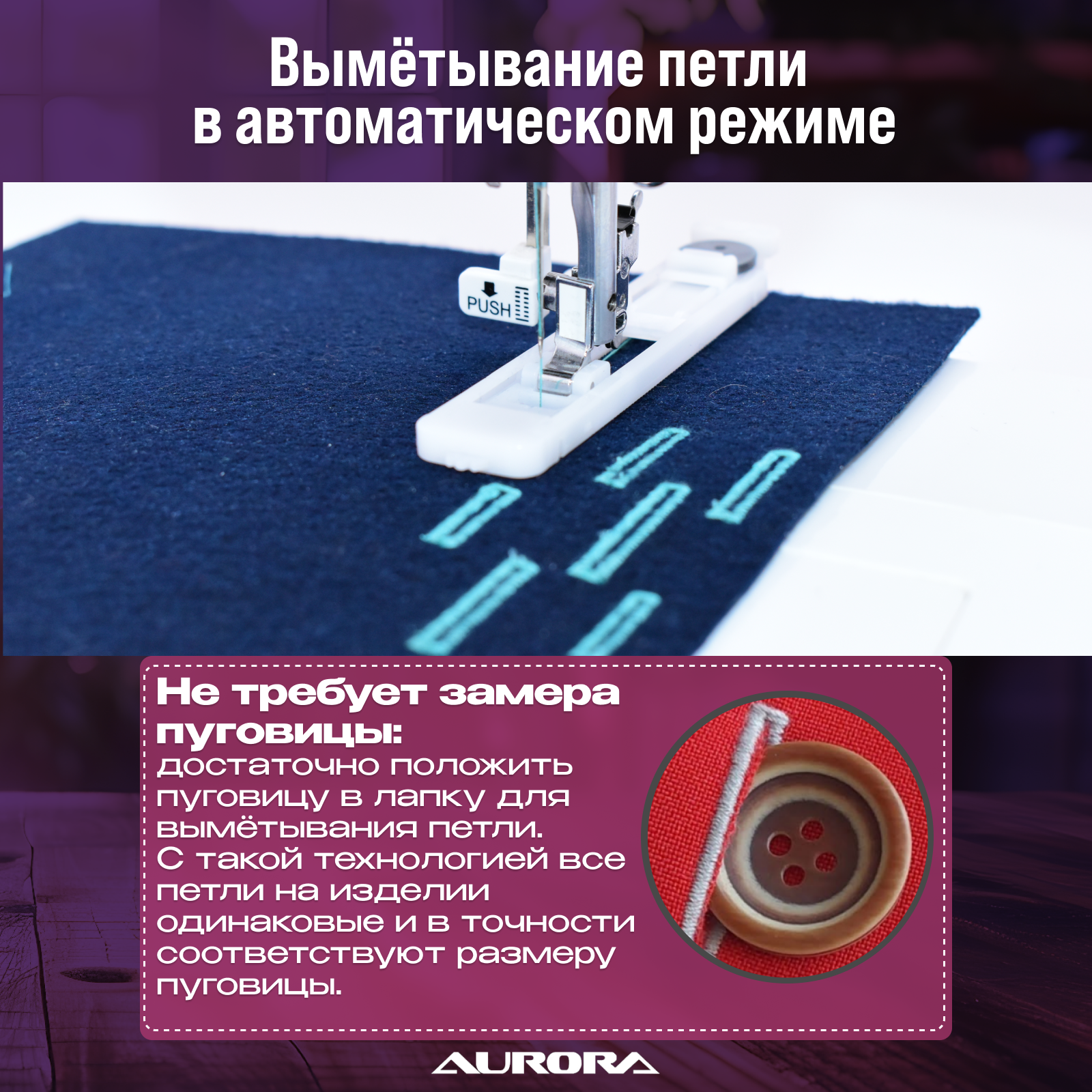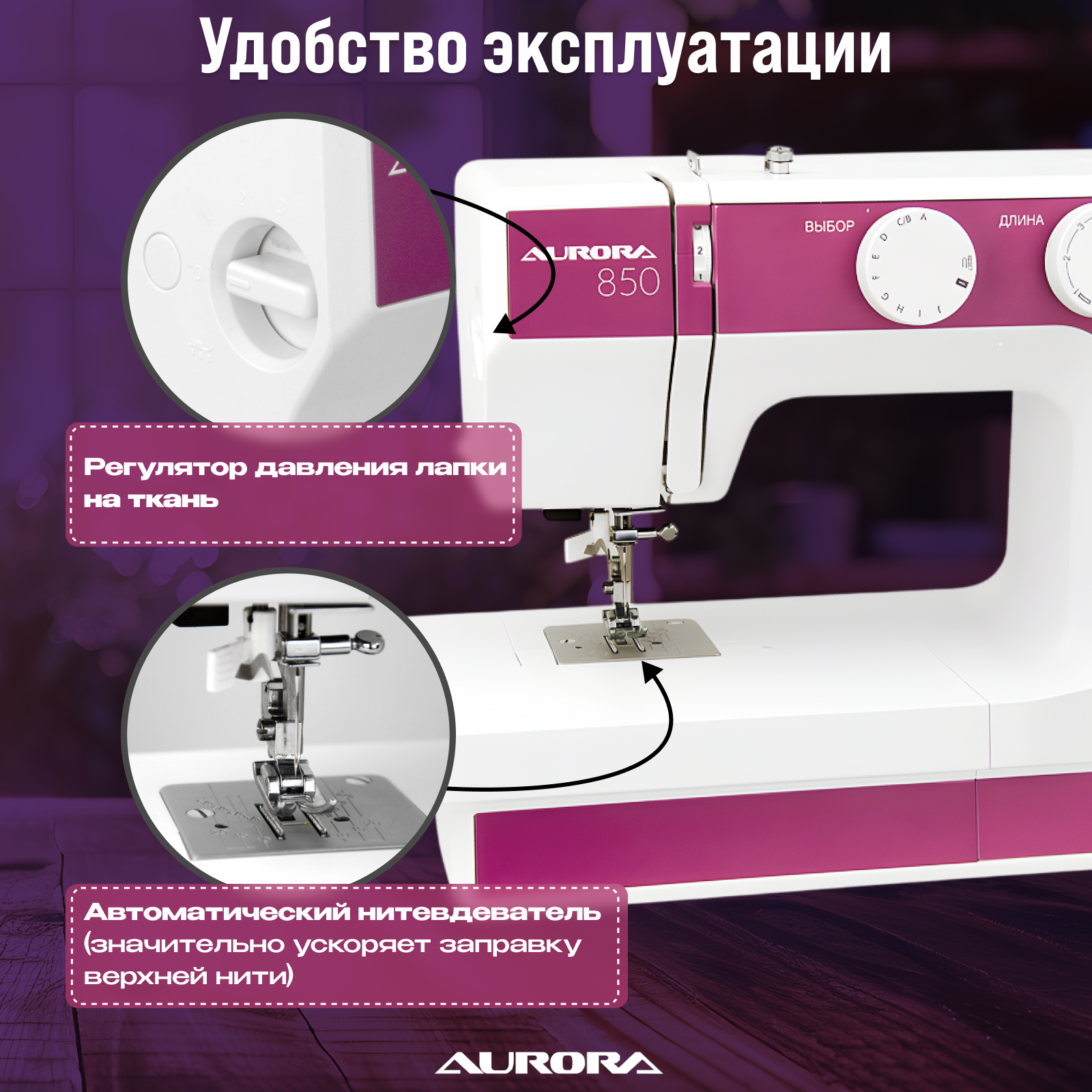 Швейная машинка AURORA 850 розовый, расширенная комплектация лапок, металлический вертикальный челнок. интересное: