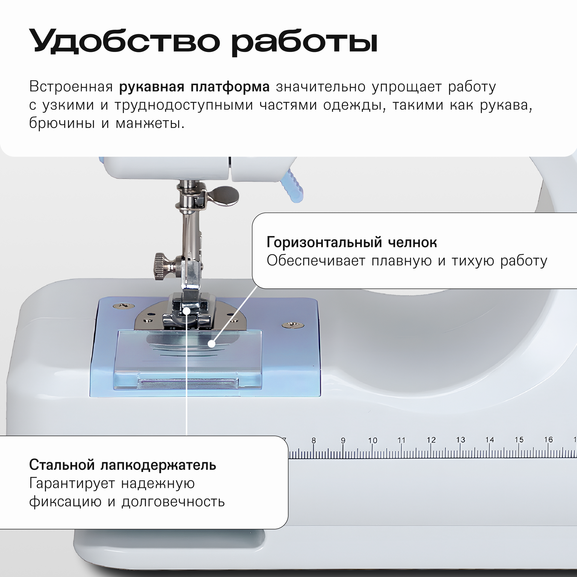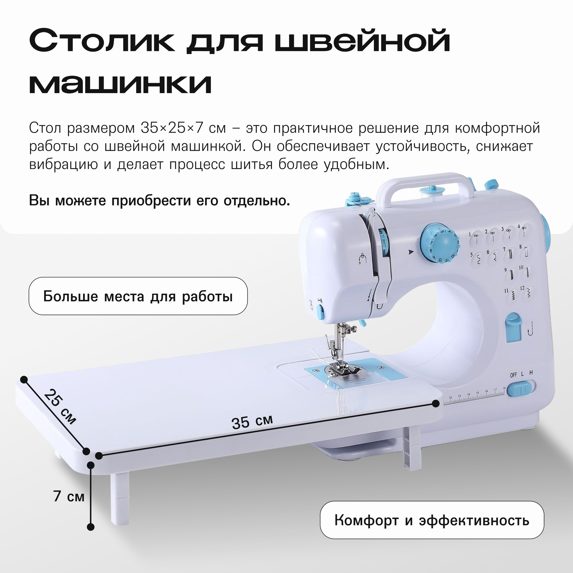 Швейная мини-машинка, 12 типов стежков, 2 скорости + педаль, белая с голубым интересное: