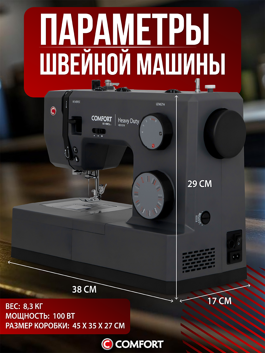 Ниже Вы можете прочитать отзывы на Швейная машина Comfort HD1019, 34 операции, нитевдеватель, электронный блок, доп. столик, ознакомится с подробными характеристиками, посмотреть интересные обзоры и фотографии на Швейная машина Comfort HD1019, 34 операции, нитевдеватель, электронный блок, доп. столик.