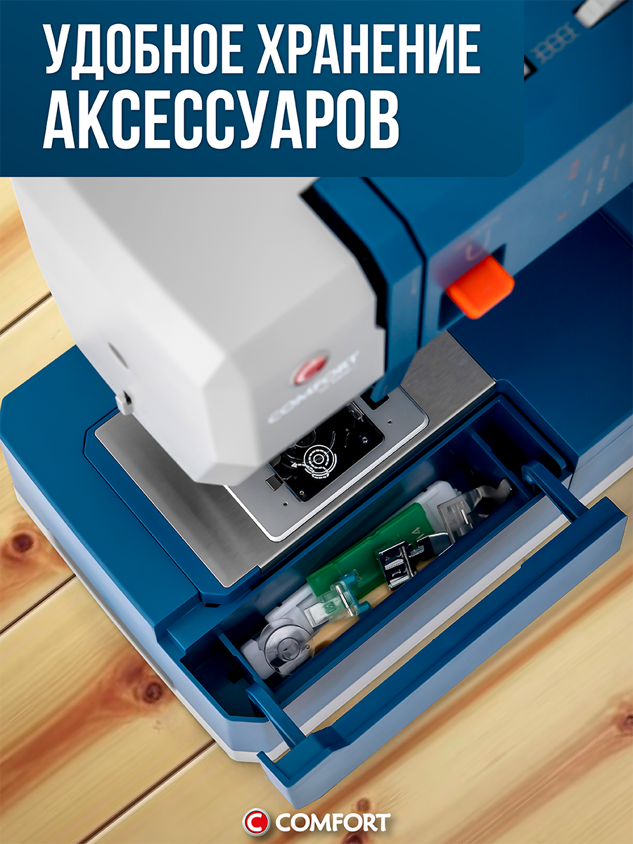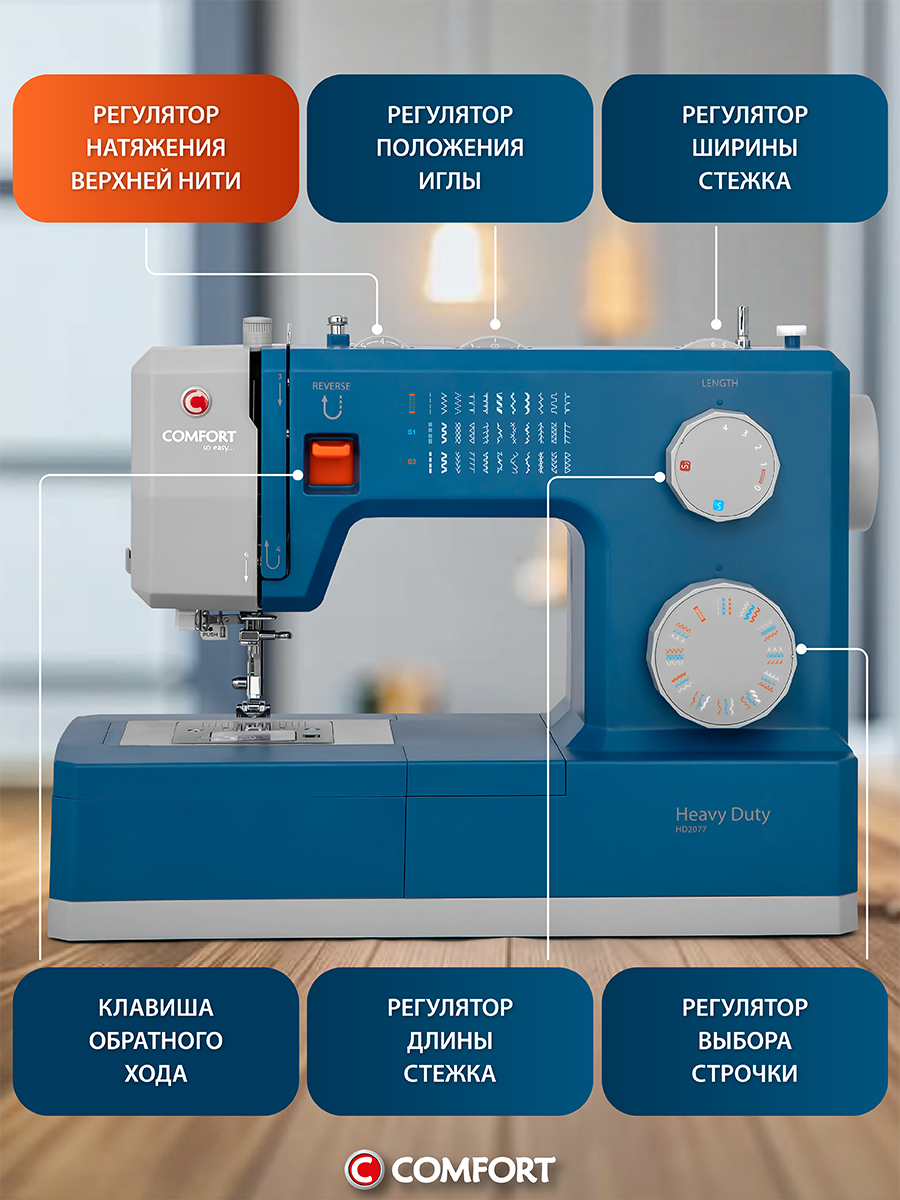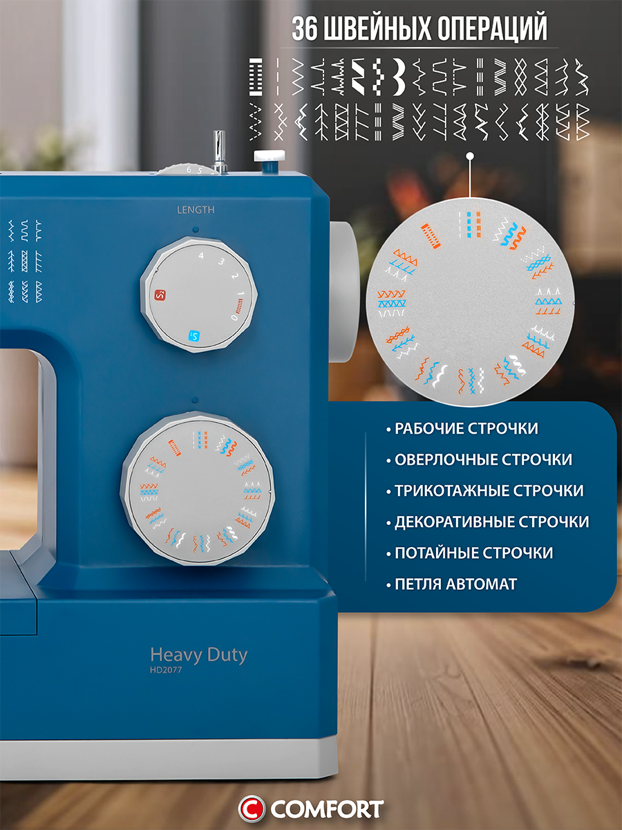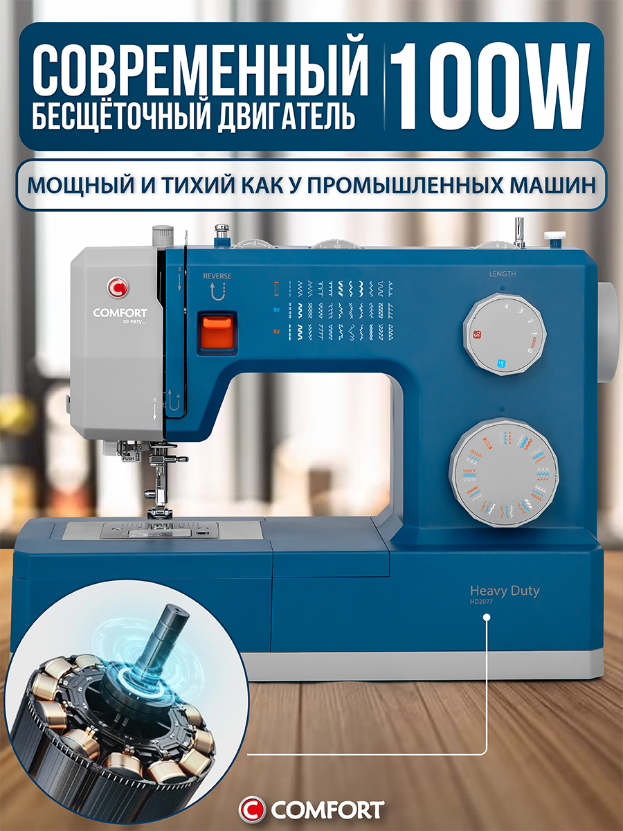 Швейная машина Comfort HD2077, 34 операции, петля автомат, нитевдеватель, доп. столик, регулятор давления на ткань интересное: