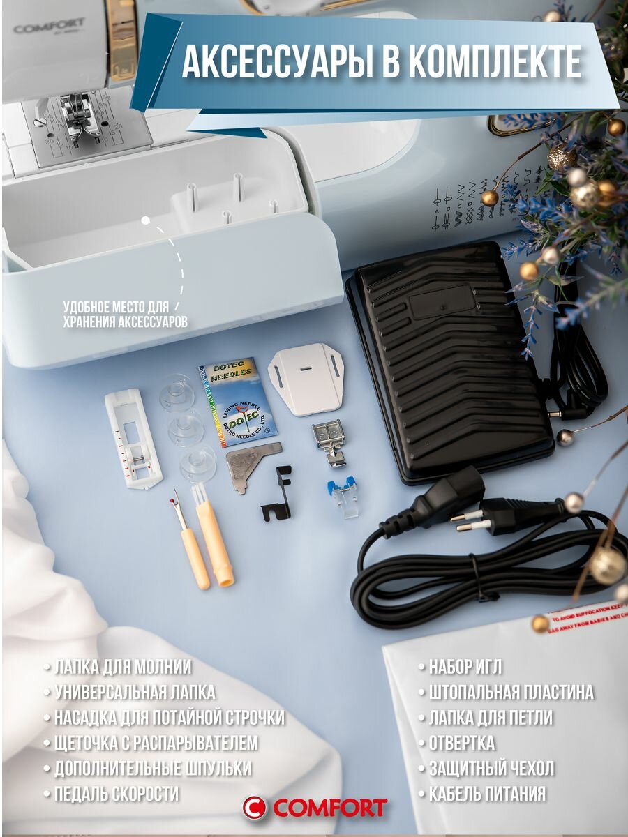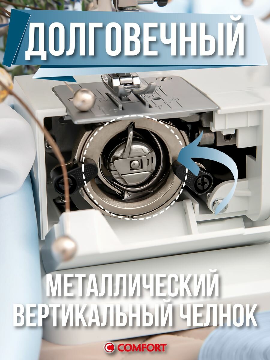 Швейная машина Comfort 1040, 25 операций, петля полуавтомат, нитевдеватель, мощный двигатель 100 Вт интересное: