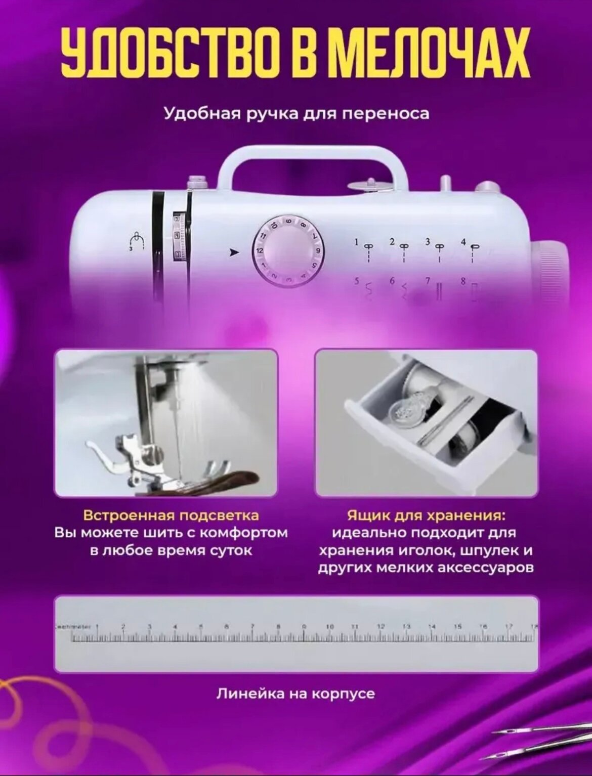 | Дополнительная информация | швейная машина справляется с двойной нитью, что обеспечивает надежность ваших вещей. |