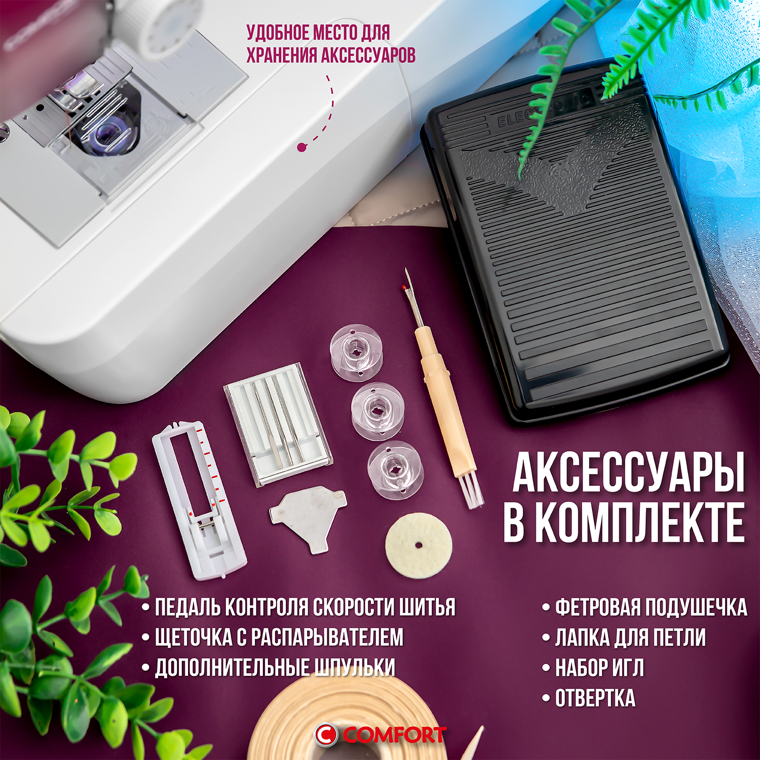 Швейная машина Comfort 120, 19 операций, петля полуавтомат, горизонтальный челнок интересное: