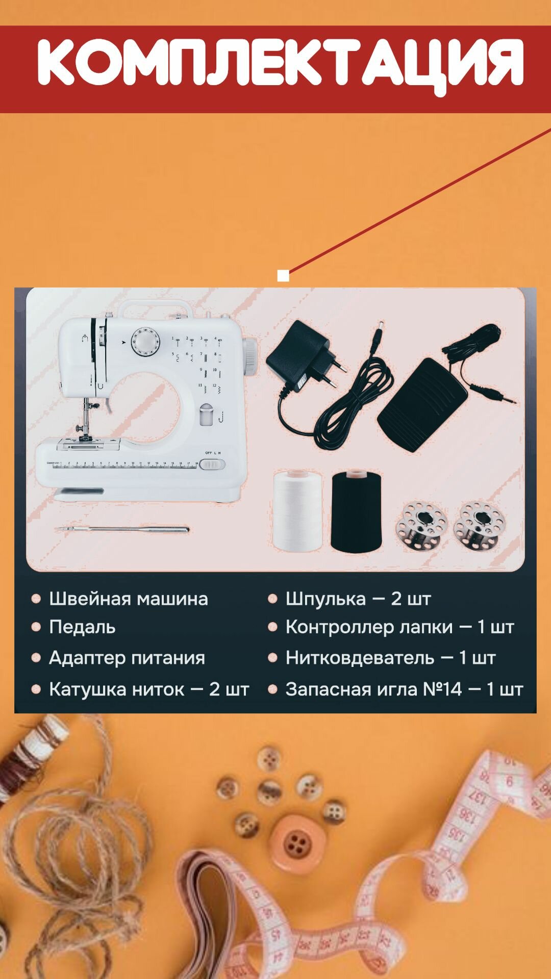 Электрическая швейная машинка с функцией реверса, 12 типов швов интересное: