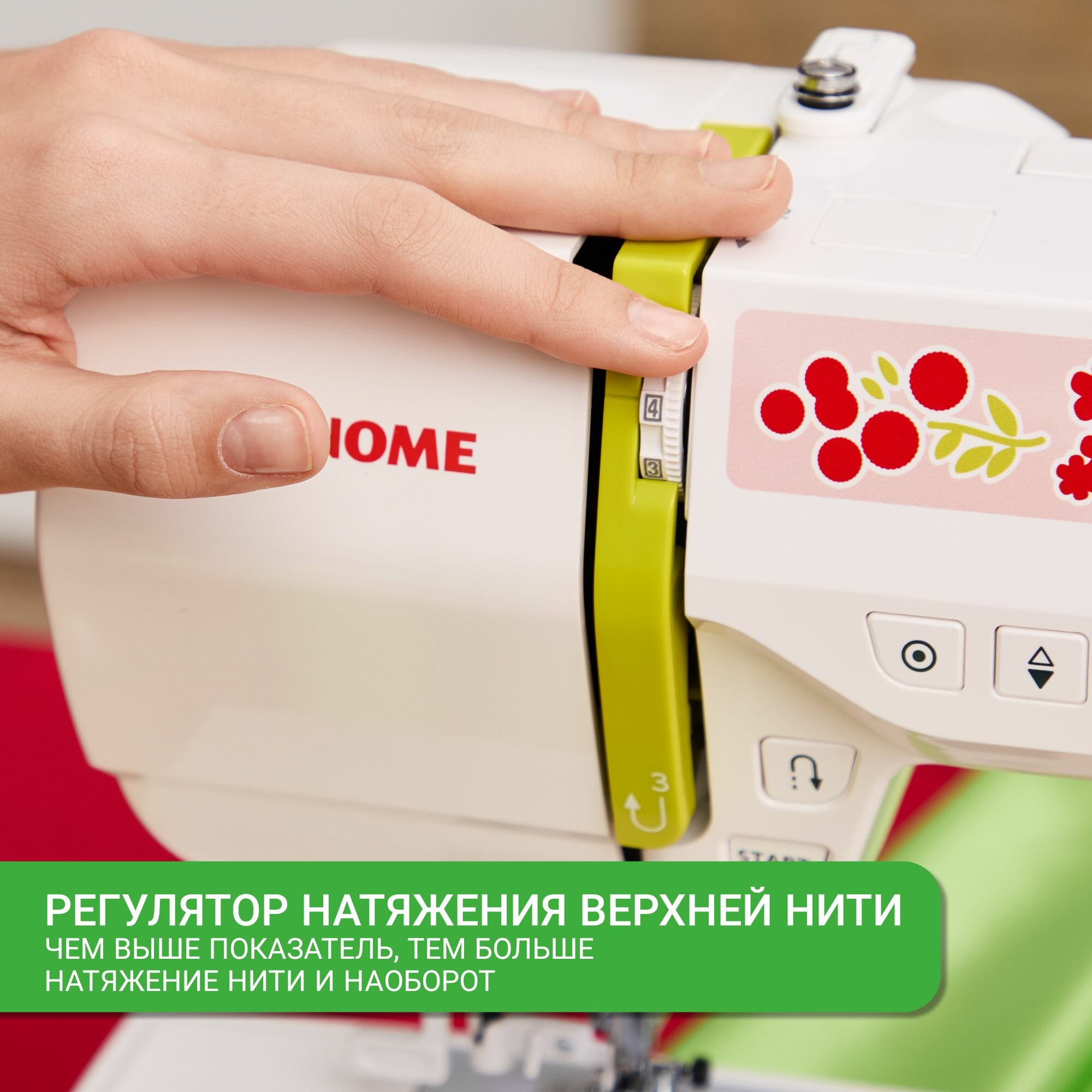 | Вид строчки | Бельевая петля, Двойной крест, Декоративная строчка, Декоративная эластичная строчка, Закрытая имитация оверлочной строчки, Зигзаг, Открытая имитация оверлочной строчки, Петля-автомат, Потайная строчка, Прямая строчка, Соединительная строчка, Сотовая строчка, Трикотажная строчка, Тройная усиленная прямая строчка, Тройной усиленный зигзаг, Фестонный шов, Эластичная потайная строчка, Эластичный зигзаг |