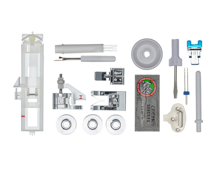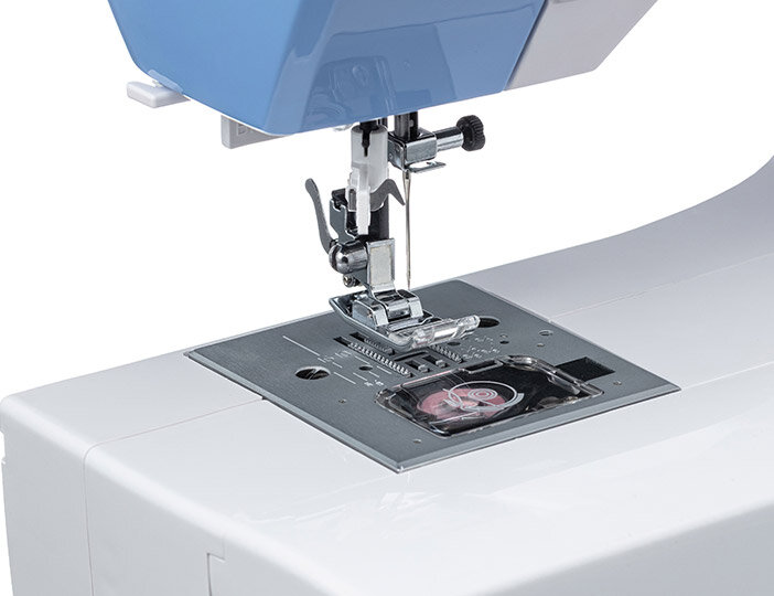| Особенности | двойная игла, мягкий чехол, ограничитель скорости, работа с грубыми тканями, работа с тонкими тканями, система измерения размера пуговиц, швейный советник |
