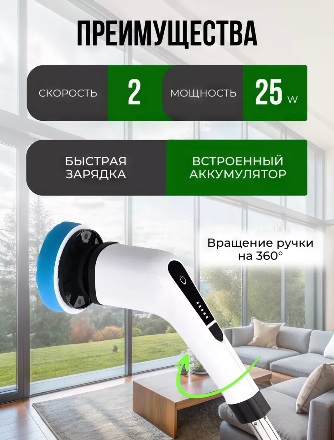 Электрическая щетка для уборки "7 в 1", беспроводная, Li-Ion аккумулятор, время работы 90 мин интересное: