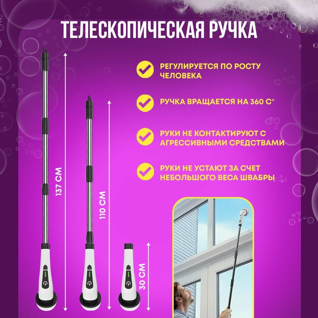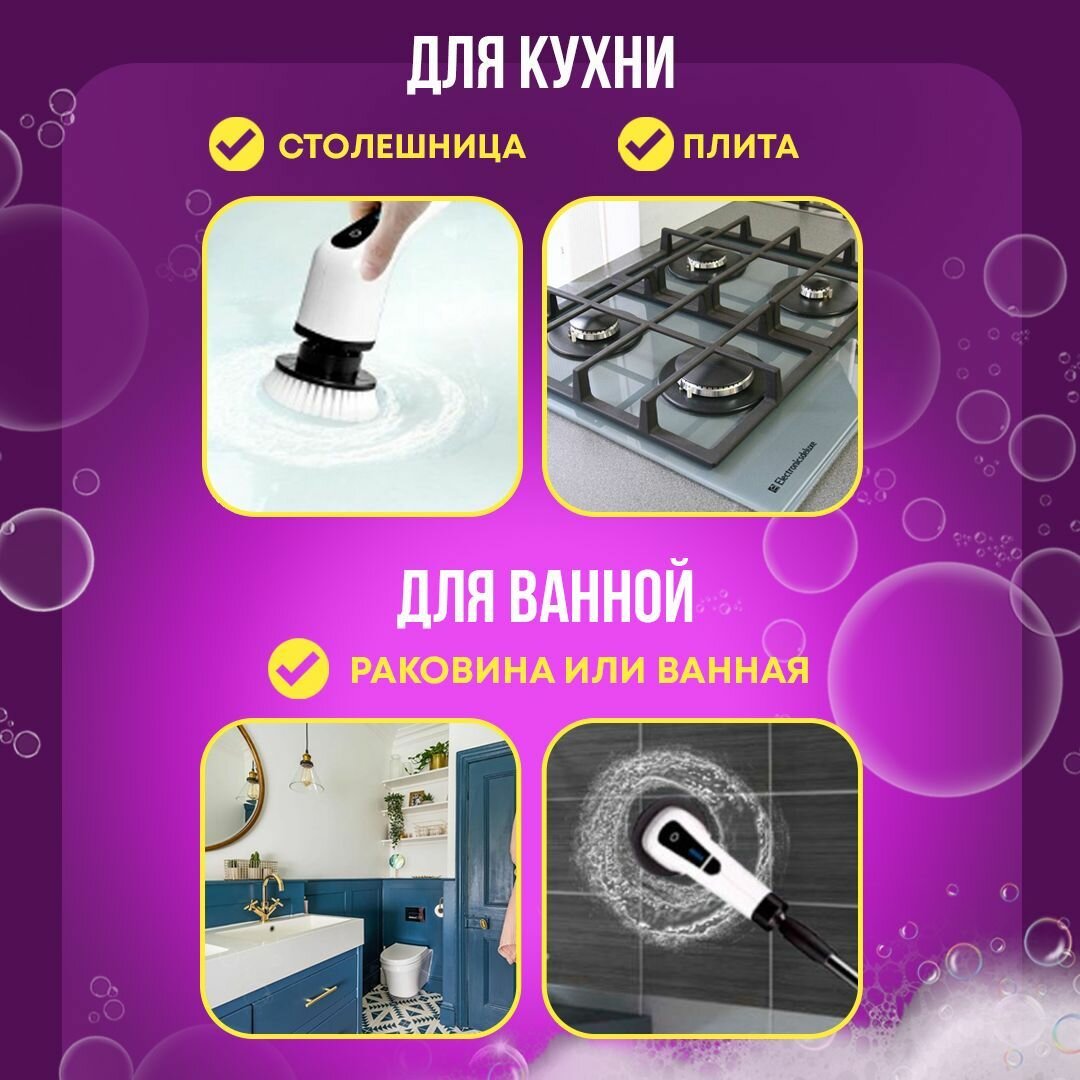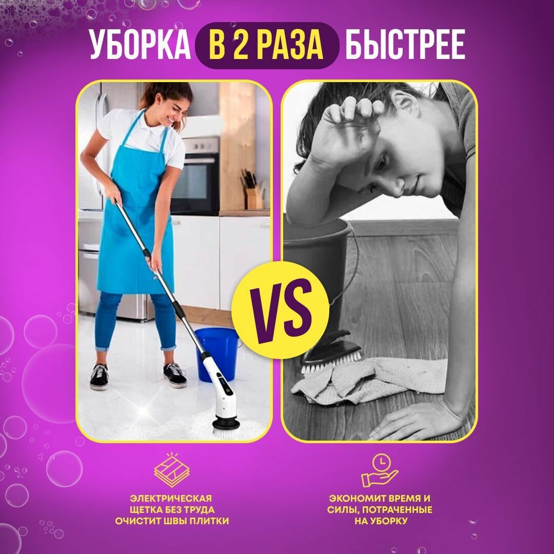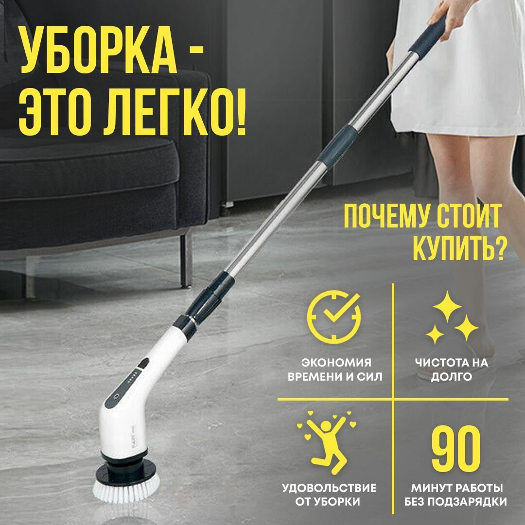 Электрическая беспроводная щетка-швабра для уборки дома и автомобиля, 8 насадок интересное: