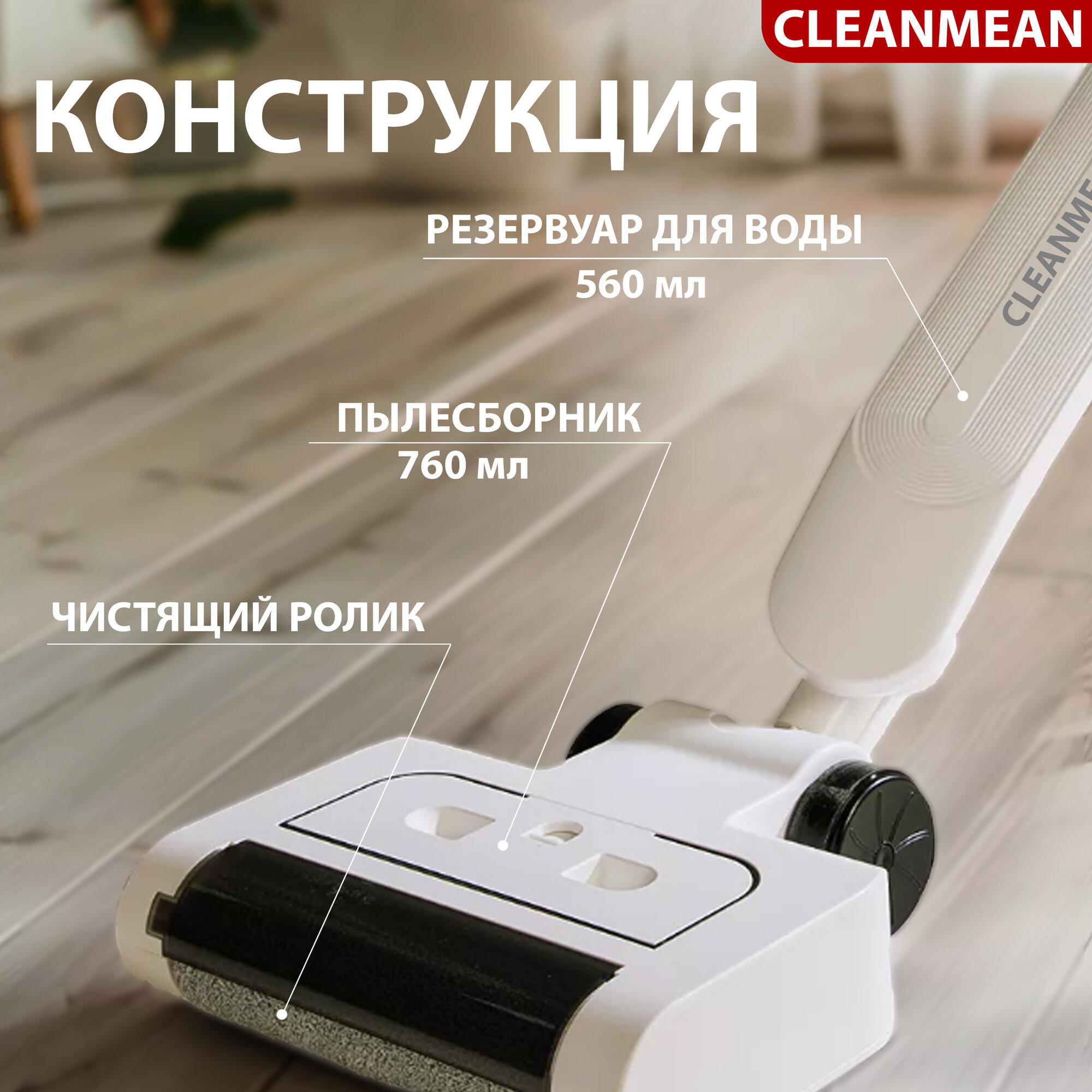 Беспроводная электрошвабра для мытья пола с самоочисткой CLEANMEAN - белая интересное: