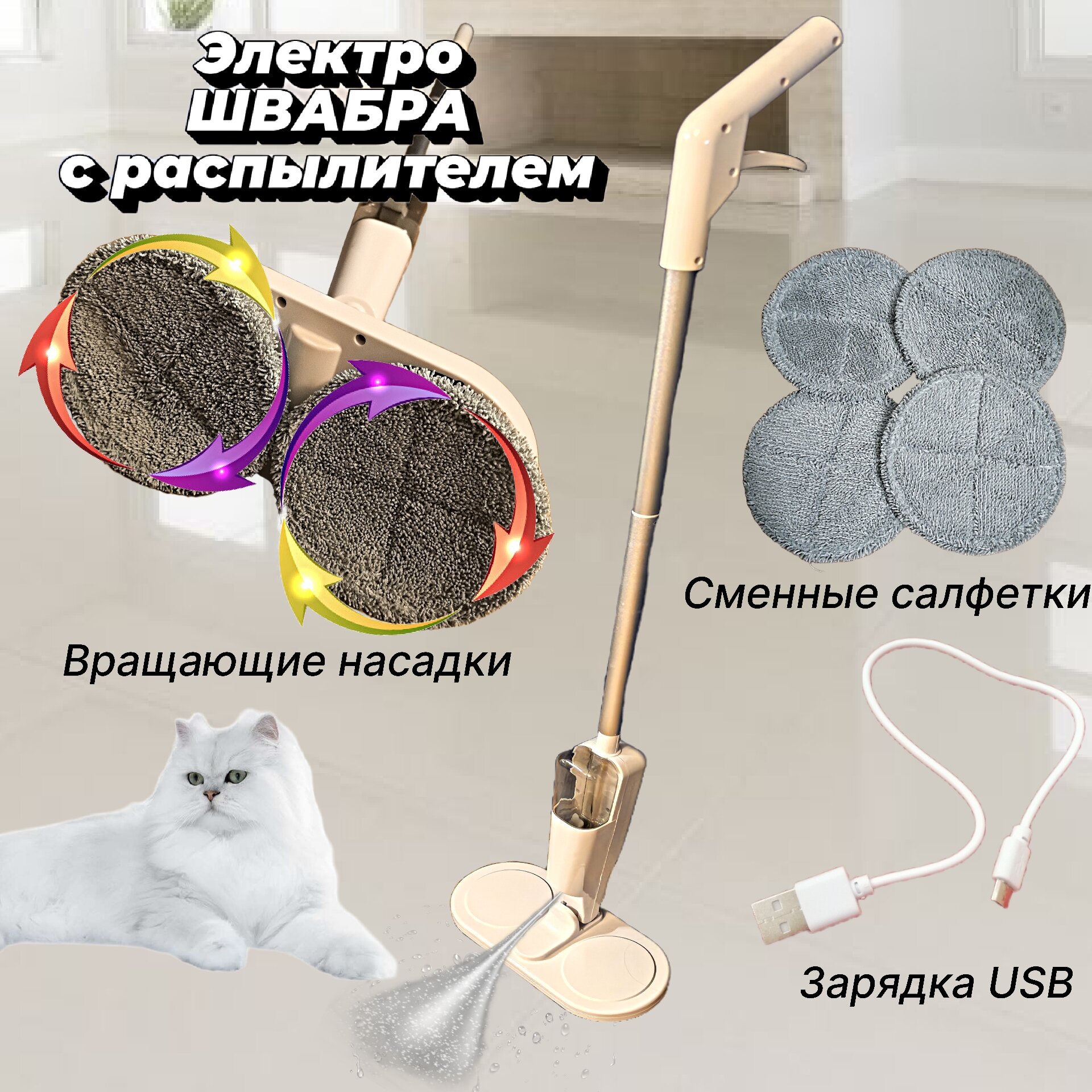 Электрошвабра беспроводная для влажной уборки пола с 2-мя вращающими насадками и распылителем, полотер белый интересное: