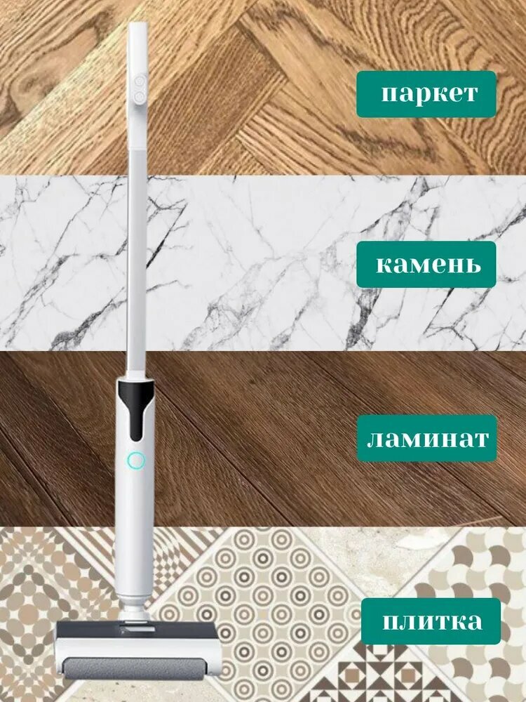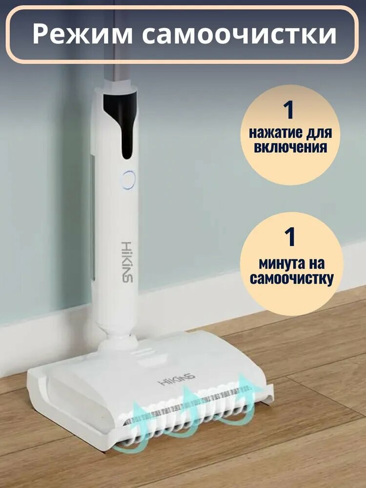 Электрошвабра беспроводная с функцией самоочистки,Низкий уровень шума,Белый интересное: