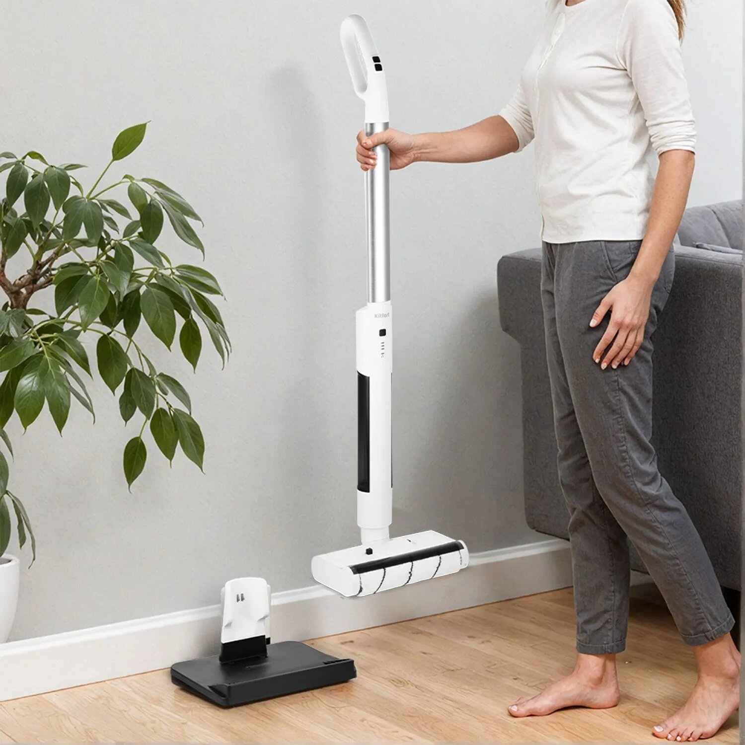 Электрошвабра Kitfort KT-5174, работа от аккумулятора, до 60 мин, 40Вт, 2 валика интересное: