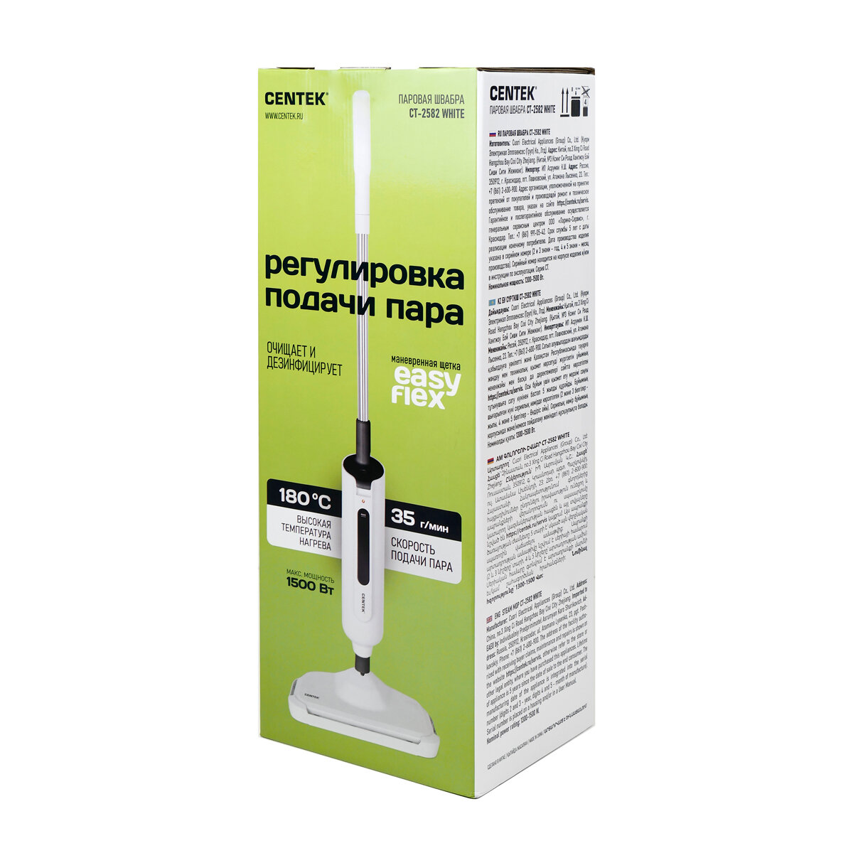 Ниже Вы можете прочитать отзывы на Паровая швабра CENTEK CT-2582 White: 1500Вт, 0.8 Бар, 330мл. бак, 2в1 швабра/пароочиститель, EasyFlex, ознакомится с подробными характеристиками, посмотреть интересные обзоры и фотографии на Паровая швабра CENTEK CT-2582 White: 1500Вт, 0.8 Бар, 330мл. бак, 2в1 швабра/пароочиститель, EasyFlex.
