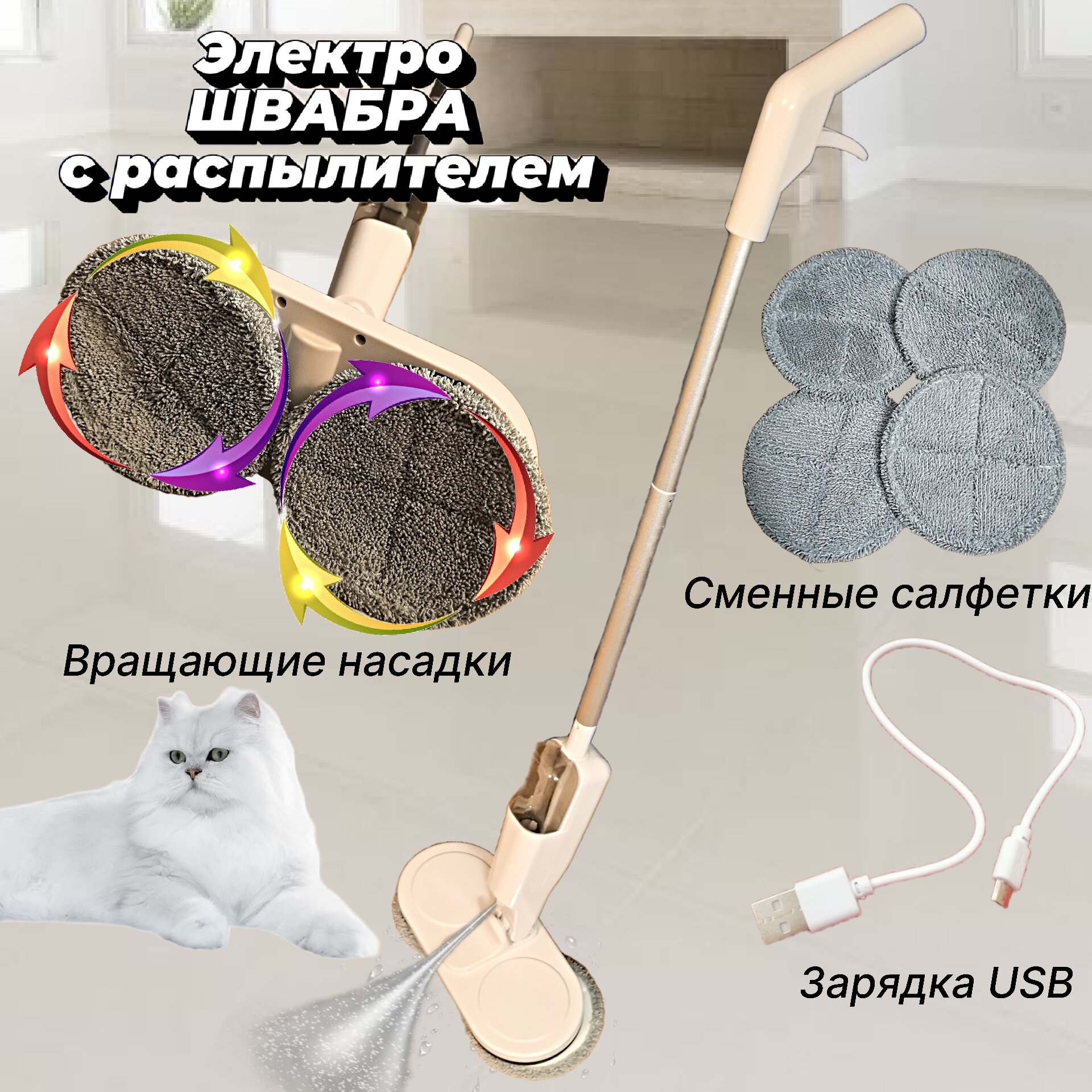 Электрошвабра беспроводная для мытья полов, стен, окон с резервуаром для воды, 4 насадки из микрофибры, USB интересное:
