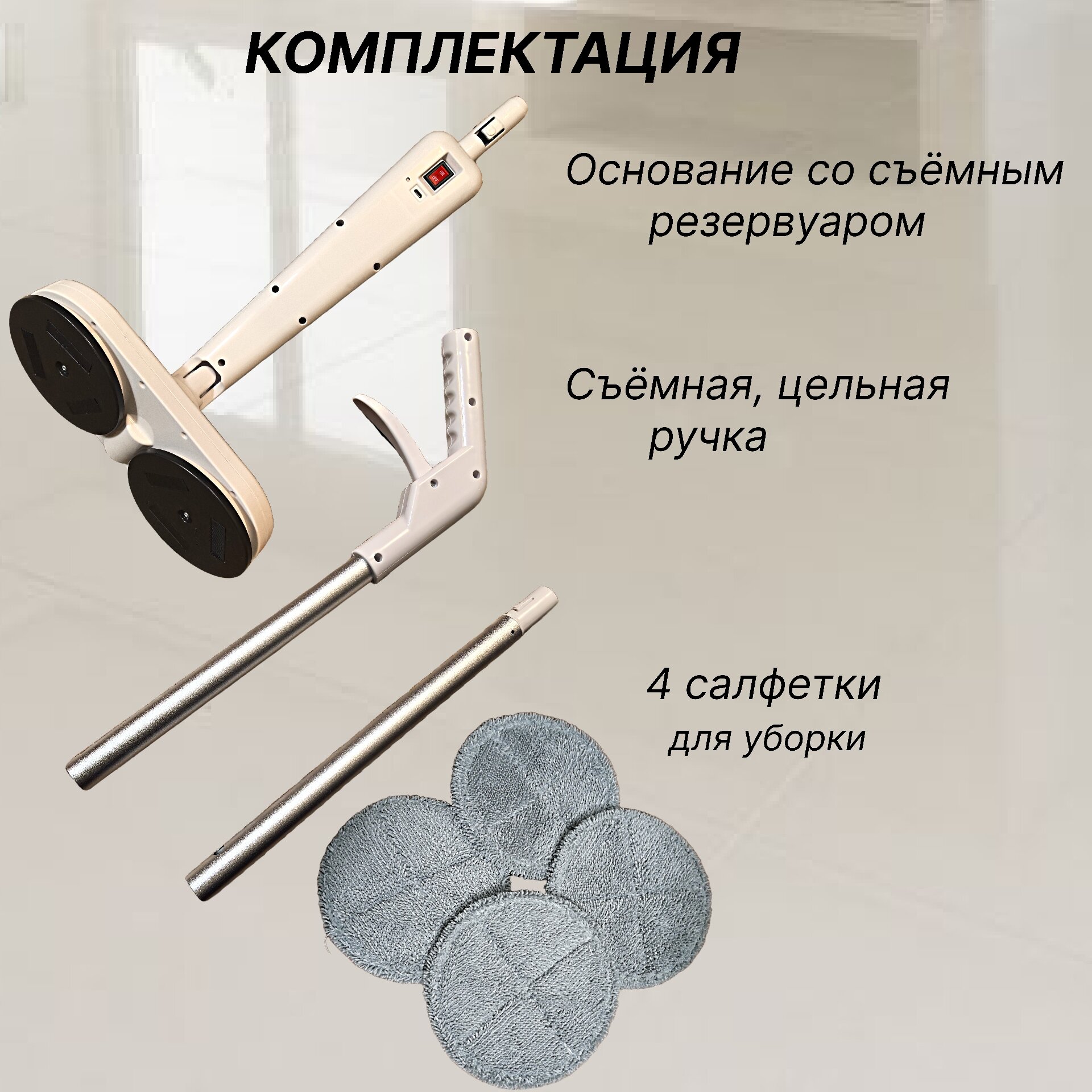 Электрощетка для мытья полов, с резервуаром для воды, 4 круглых насадки, беспроводное использование