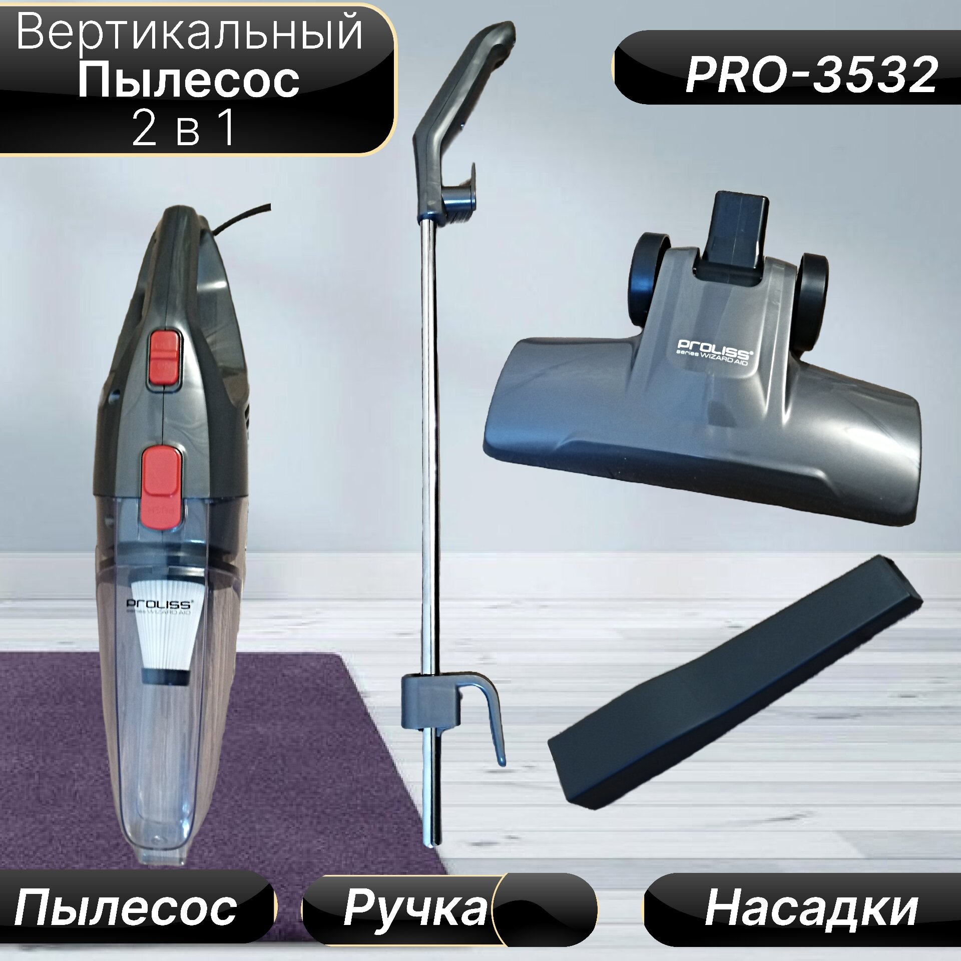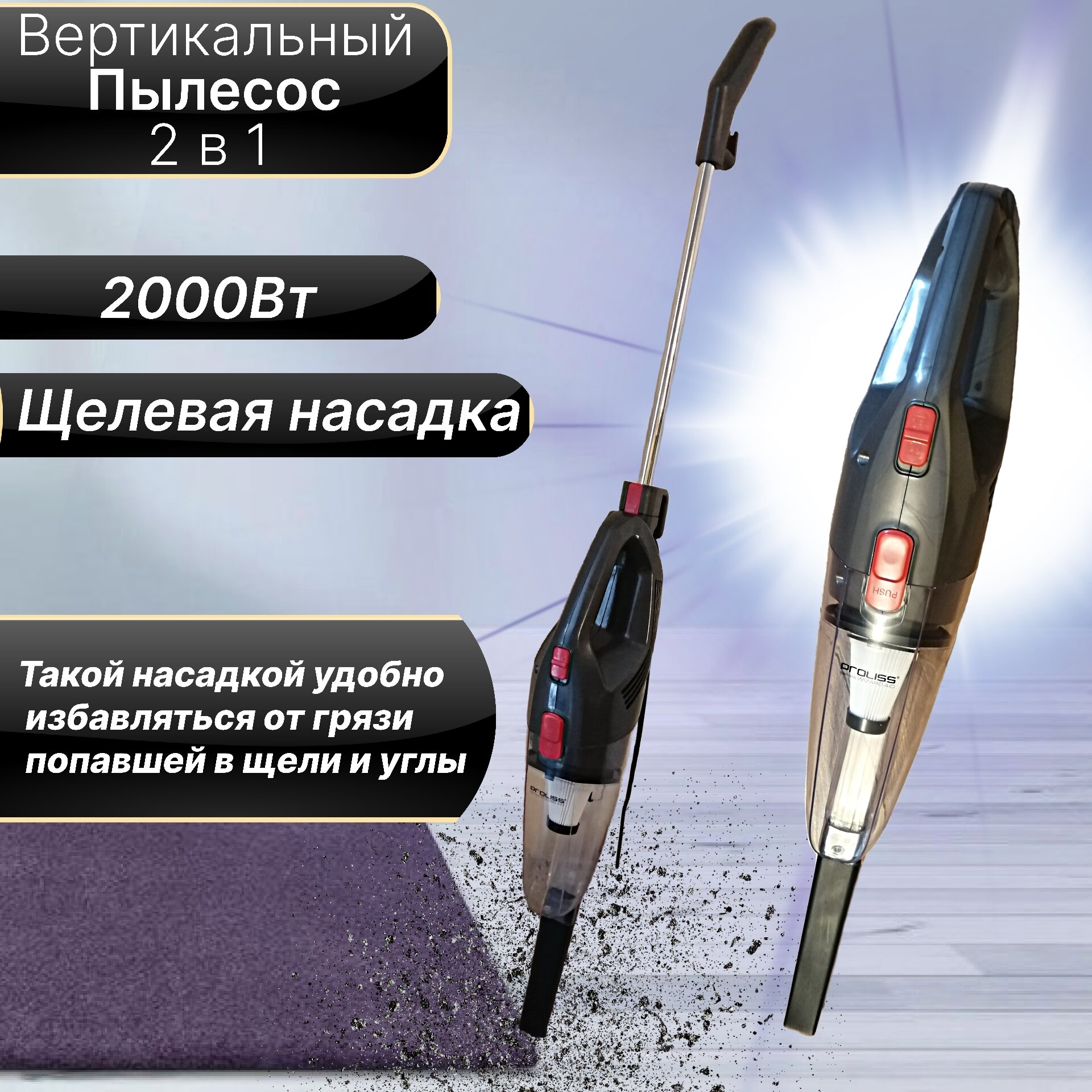 Вертикальный Пылесос для дома мощностью 2000Вт, 18000PA, 2 насадки для пола и мебели, Вертикальный ручной пылесос 2 в 1, серый интересное: