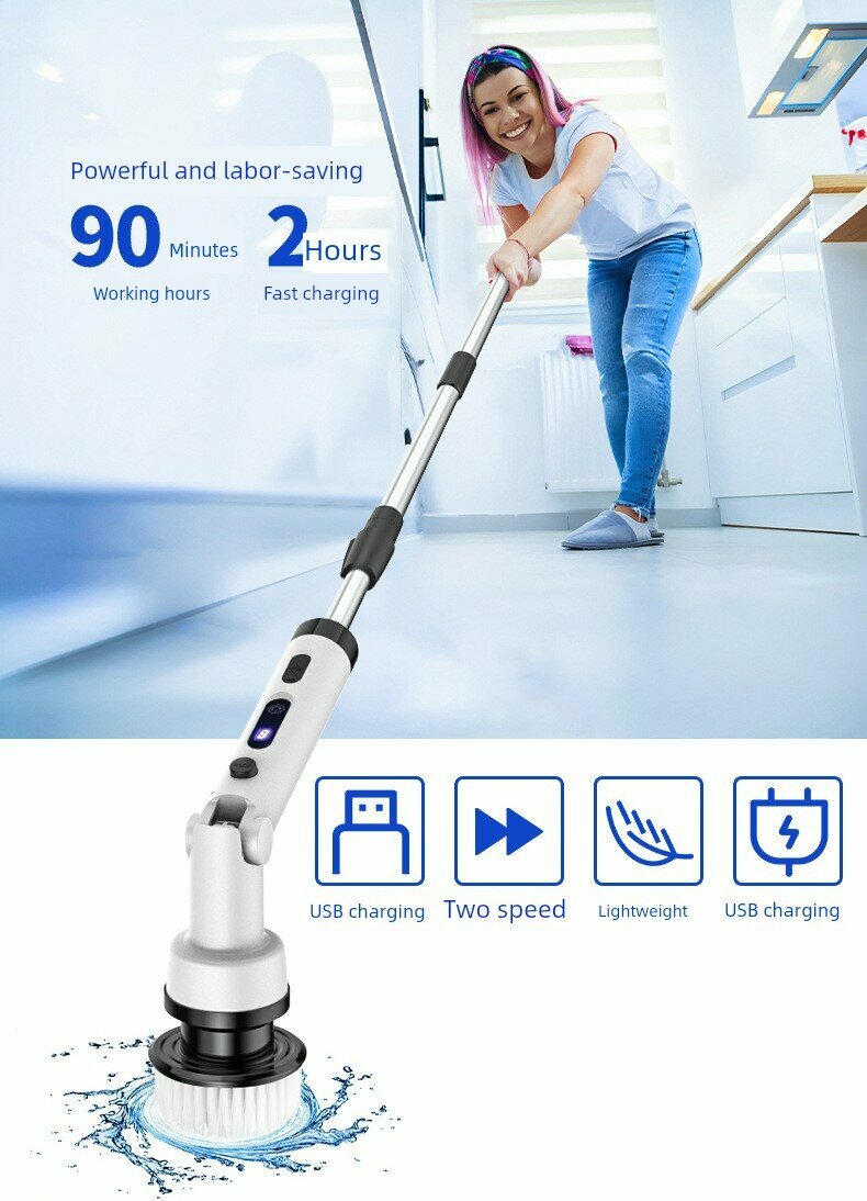 Электрическая вращающаяся щетка для уборки JY-7011, белая, 9 насадок