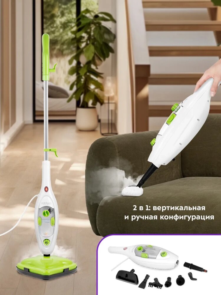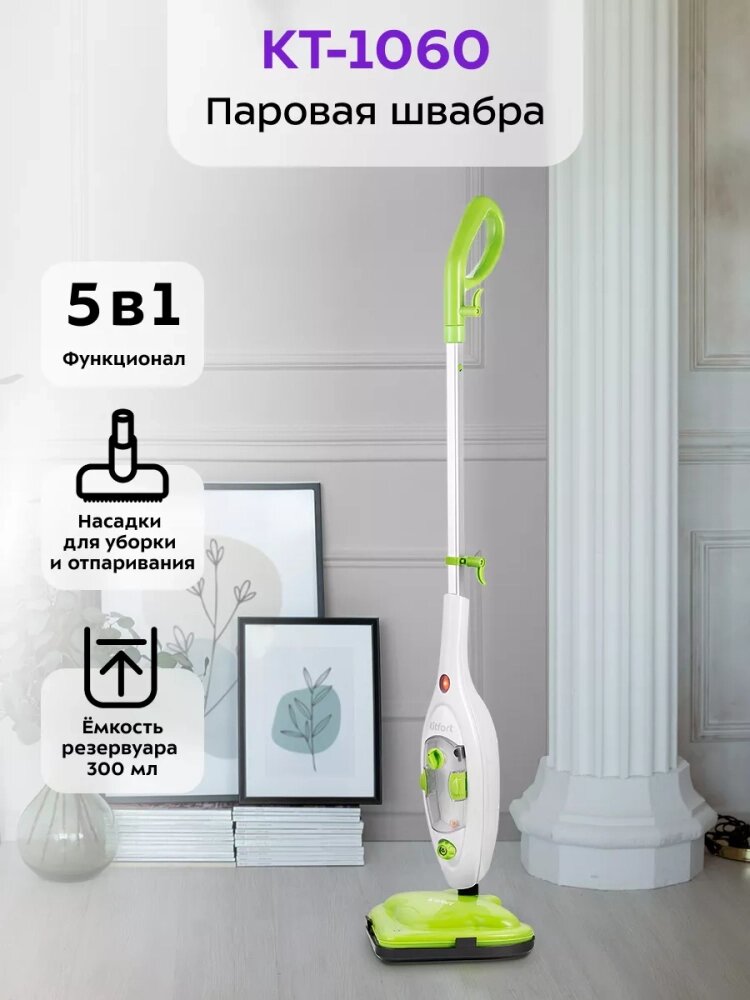Паровая швабра с насадками КТ-1060 - 1300 Вт - 300 мл интересное: