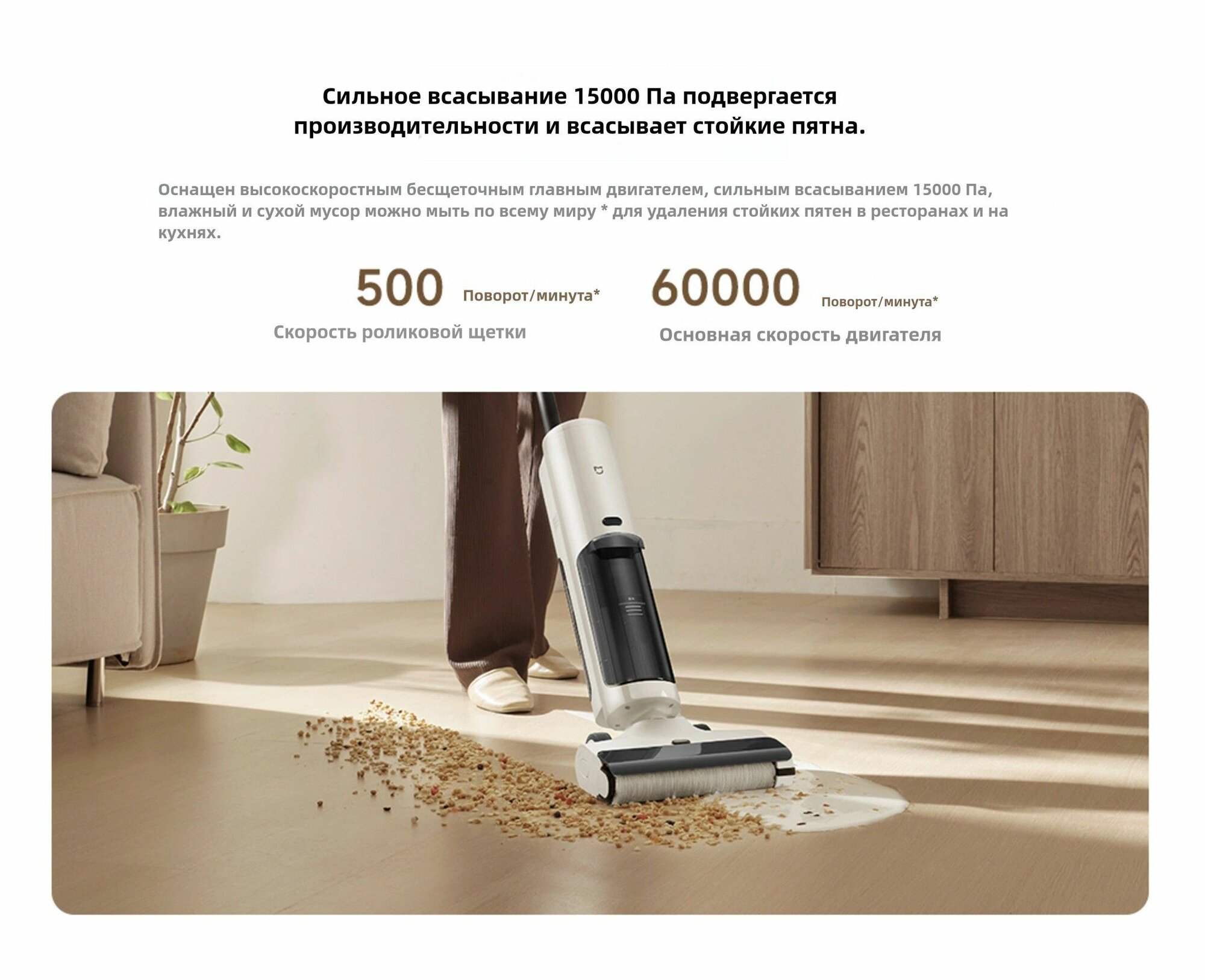 Электрошвабра беспроводная Xiaomi Mijia Wireless Floor Scrubber 4C 15000Pa D304, Белый интересное: