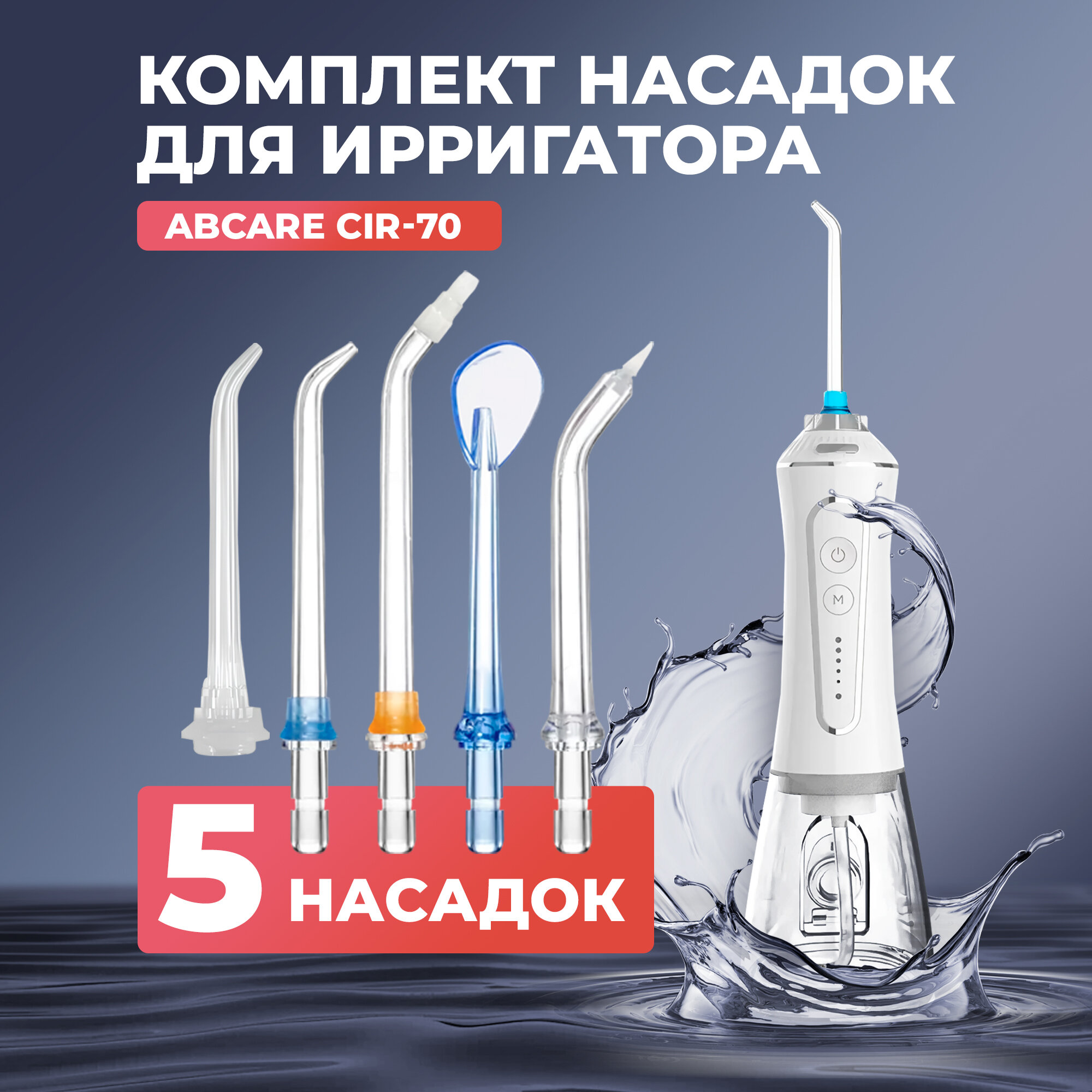 Купить Сменные насадки для ирригатора ABCare CIR-70, 5шт. в упаковке, ортодонтическая, пародонтическая, для языка, прозрачные
