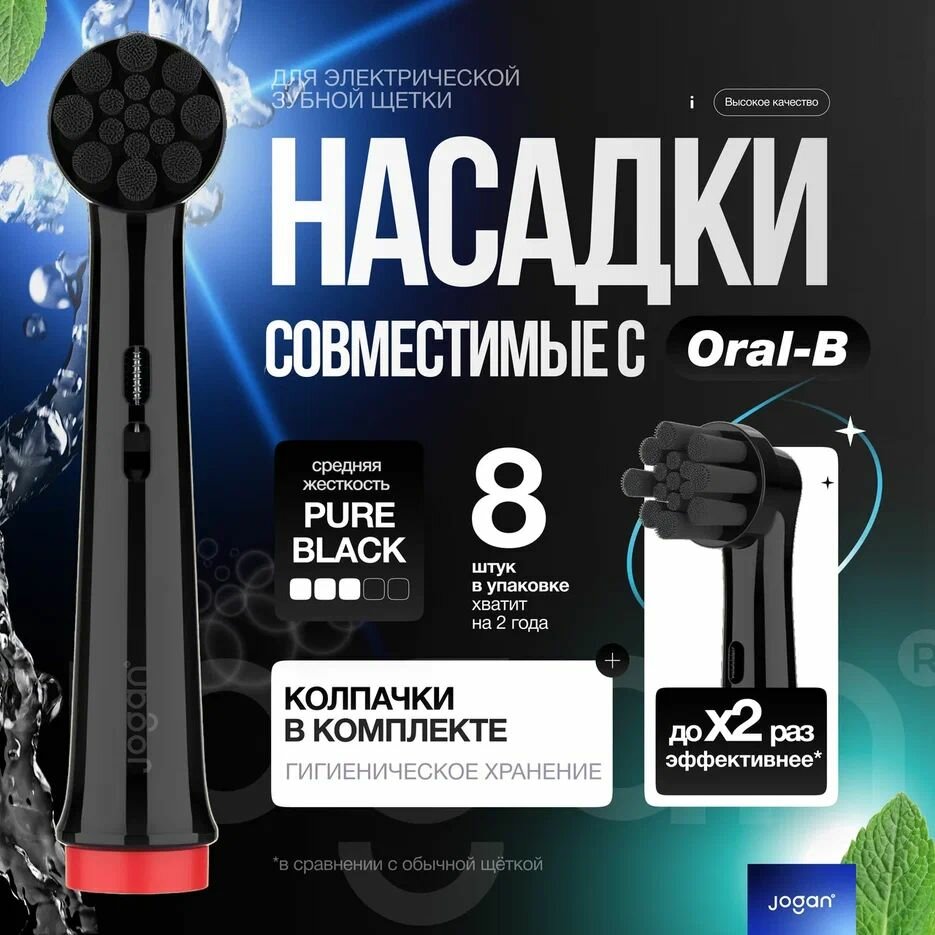 Купить Насадки для зубной щетки Oral-B, совместимые, PURE BLACK 8 штук