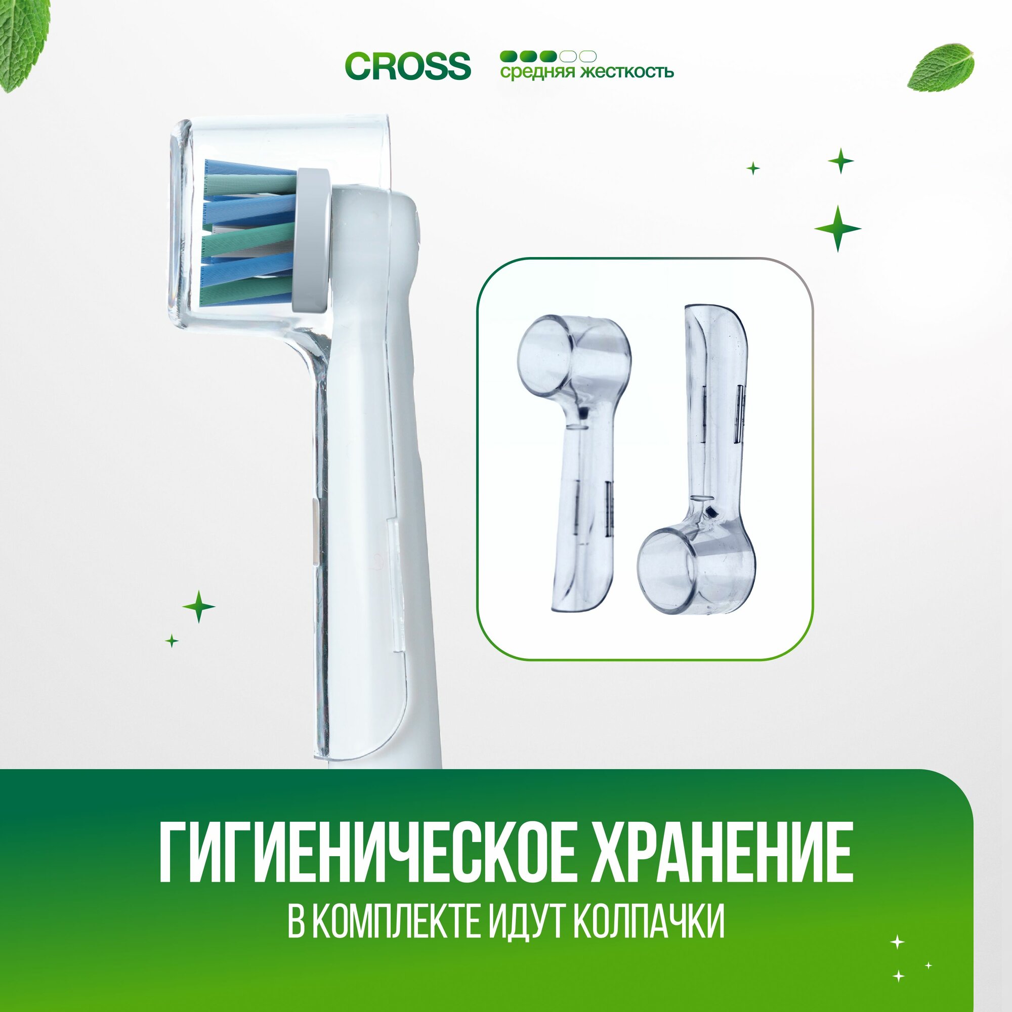 Насадки для зубной щетки оral b, совместимые, Jogan Cross с колпачком, 2 шт.