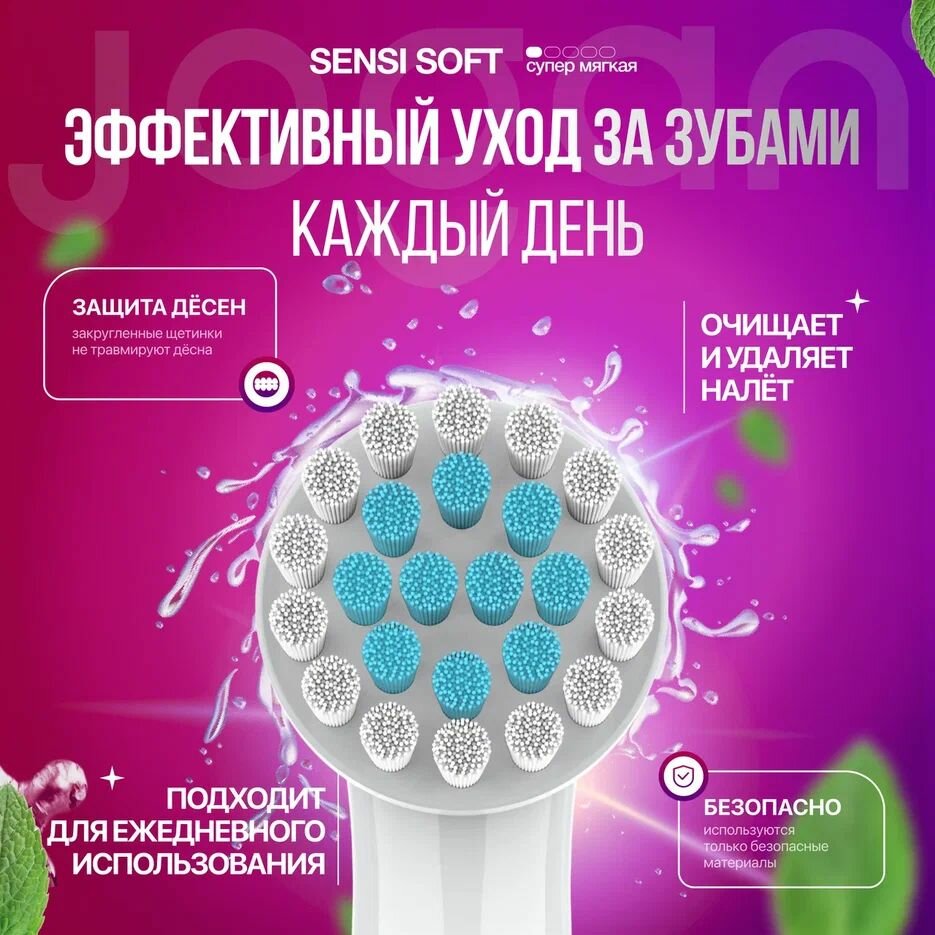 Насадки для зубной щетки совместимые с Oral-B, Jogan Sensi, сменные, с колпачком, 2 шт.
