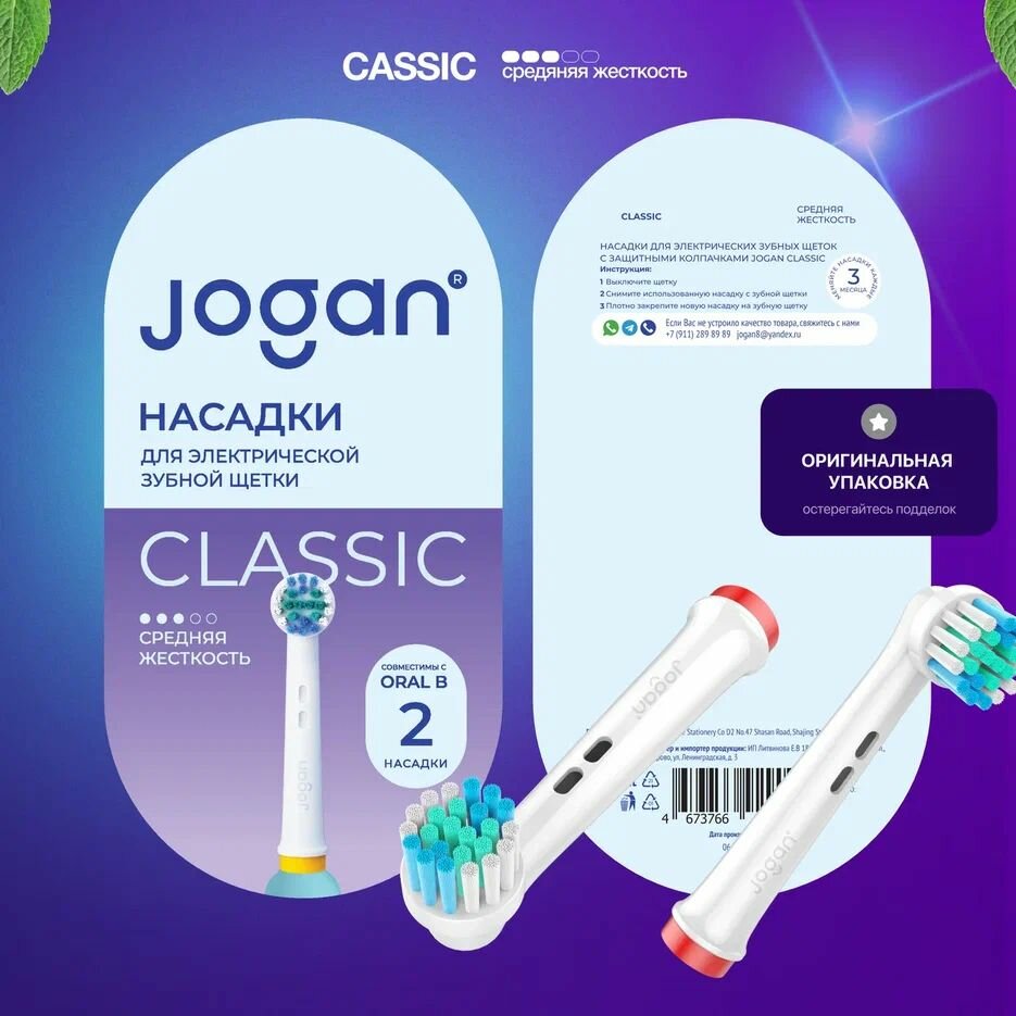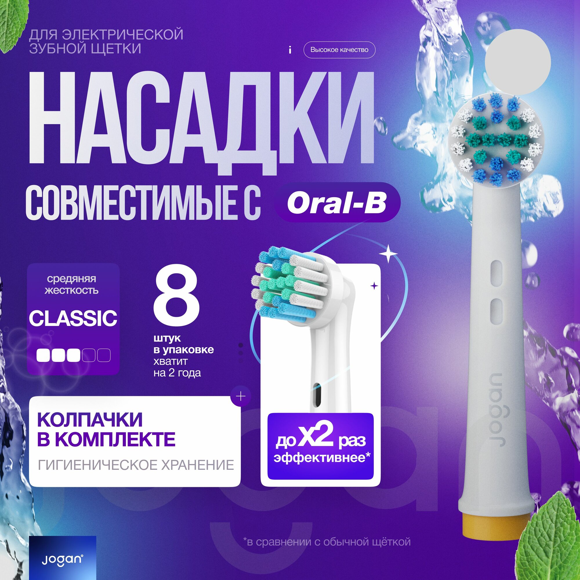 Насадки для зубной щетки оral b, совместимые, Jogan Cross с колпачком, 2 шт.
