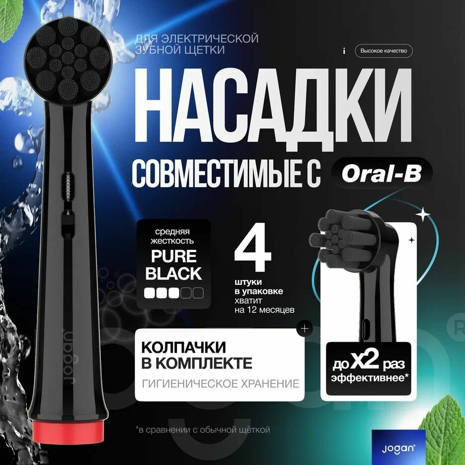 Купить Насадки для зубной щетки Oral-B, совместимые. PURE BLACK 4 штуки
