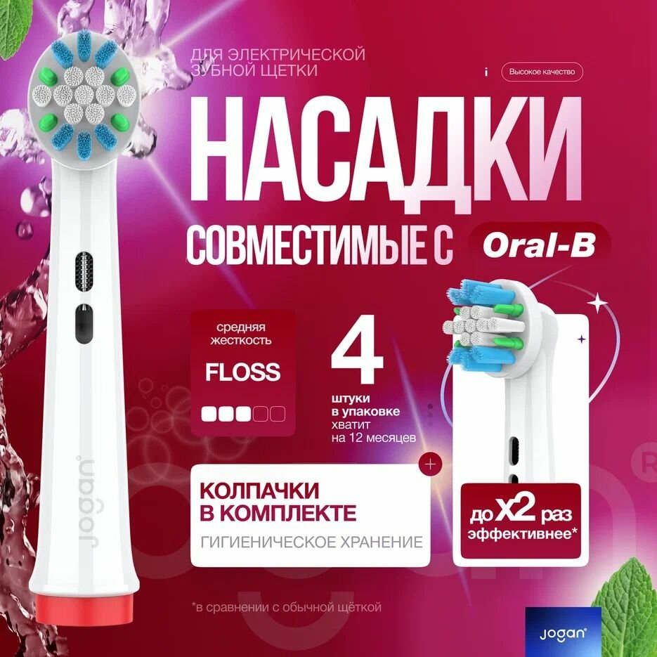 Насадки для зубной щетки оral b, совместимые, Jogan Cross с колпачком, 4 шт.