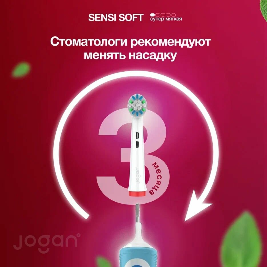Насадки для зубной щетки совместимые с Oral-B, Jogan Sensi, сменные, с колпачком, 2 шт.