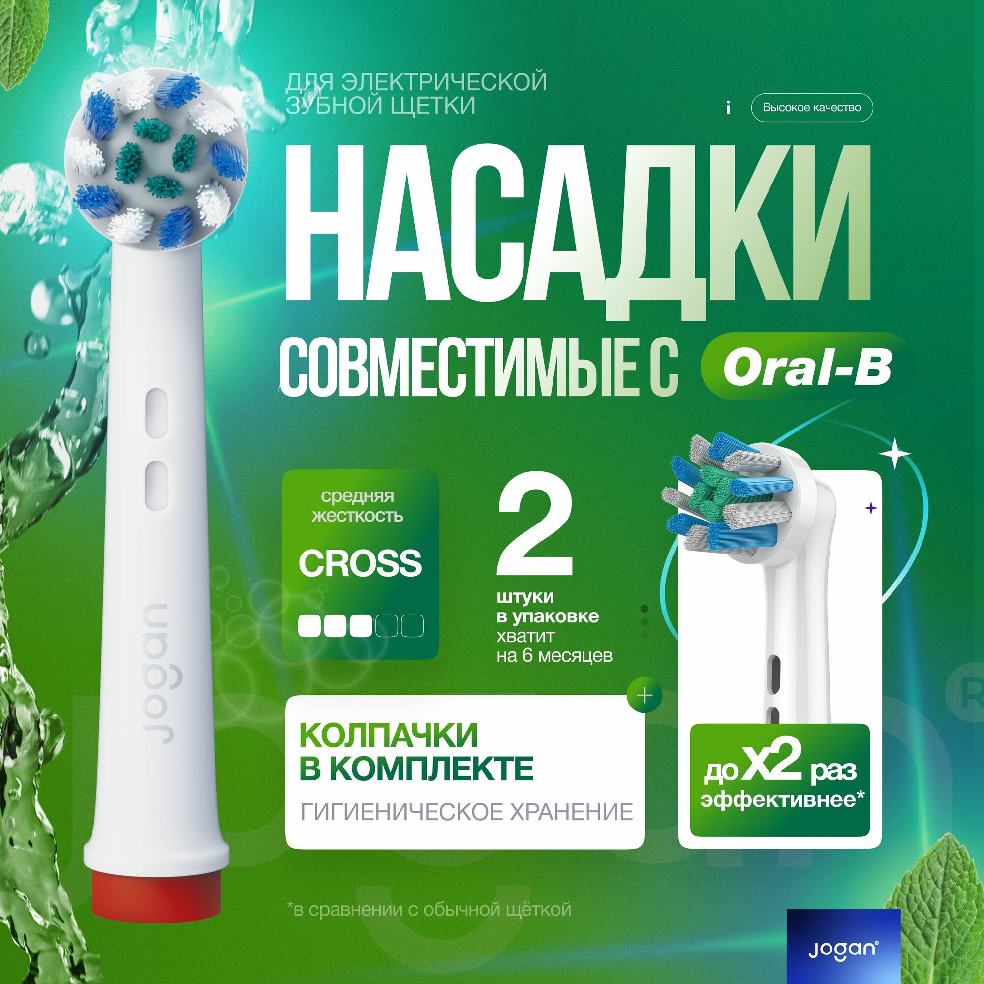 Купить Насадки для зубной щетки оral b, совместимые, Jogan Cross с колпачком, 2 шт.