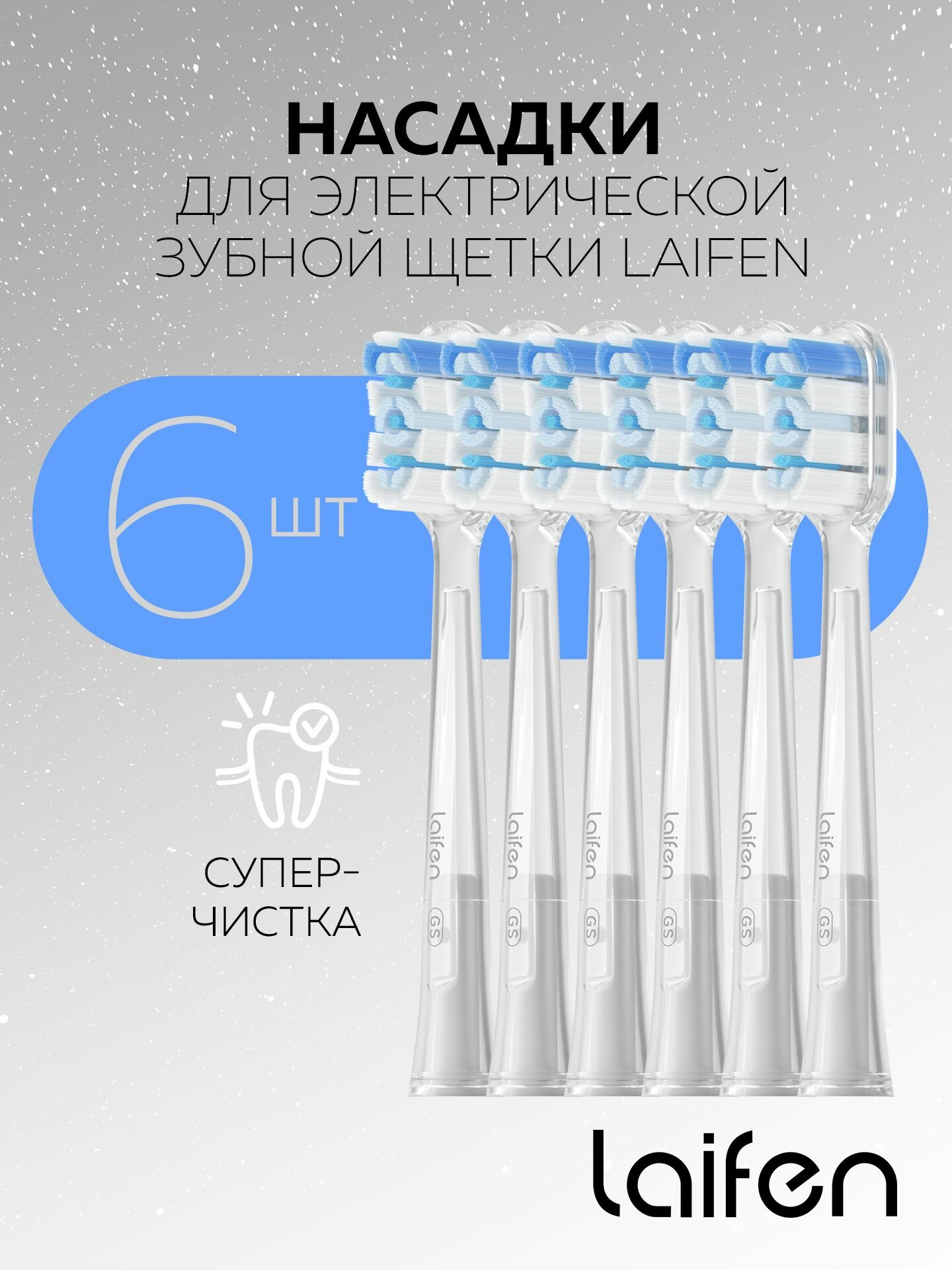 Насадки Супер-Чистка для зубных щеток Laifen Wave 6шт. (средние) интересное: