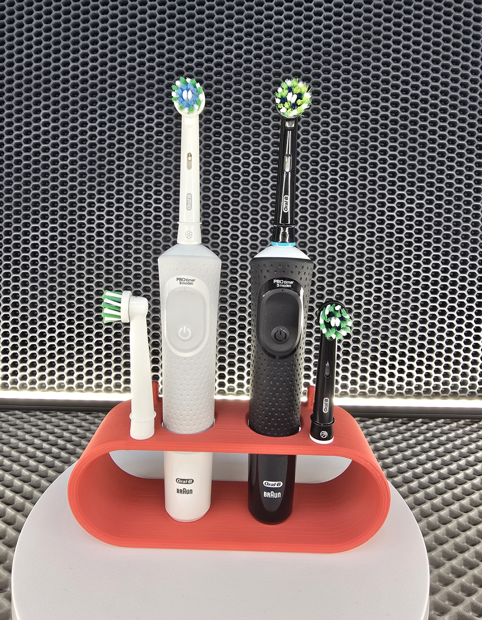 Подставка для электрических зубных щеток, с держателями насадок, на два прибора, красная интересное: