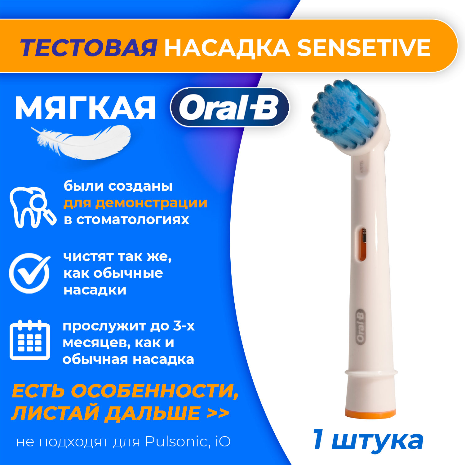 1 тестовая насадка Oral-B Sensitive Clean, мягкая, для электрической зубной щетки интересное: