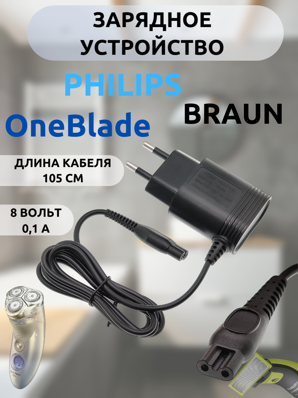 Блок питания, зарядное устройство для бритв, триммеров Philips, Braun, Oneblade, 8 В, 100мА длина провода 1.05 cм интересное: