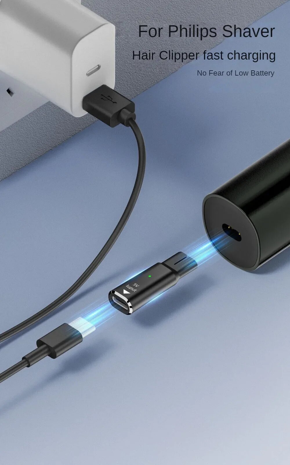 Купить Адаптер для бритвы Dawndesslo 4,3В Type-C для Philips Norelco One Blade, Black