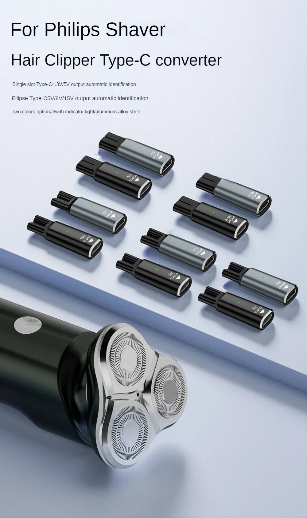 Купить Адаптер для бритвы Dawndesslo 4,3В Type-C для Philips Norelco One Blade, Grey