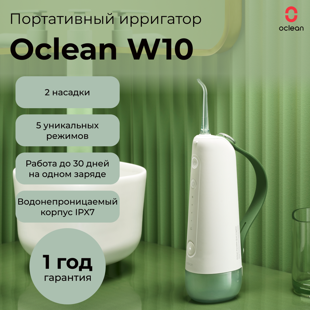 Ирригатор Oclean W10 с 2 насадками (Зеленый) интересное: